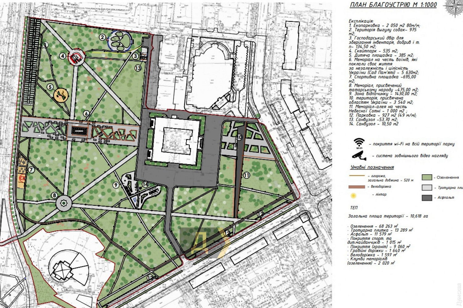 Проєкт «Сади пам'яті», який реалізується в парку, що оточує адмінбудівлю облради та військової адміністрації на проспекті Шевченка, реалізували майже на 80%. Про це «Думській» розповіли в мерії міста, один із підрозділів якої, управління капітального будівництва, є замовником робіт. Наразі роботи ведуться з боку Канатної. З десяток будівельників щодня укладають плитку, займаються комунікаціями, монтують декоративне освітлення і систему автоматичного поливу та багато іншого. Тут з'явиться меморіал загиблим за свободу і незалежність України. Великий бетонний стилобат із висадженими всередині живими деревами давно готовий, незабаром його обкладуть чорними гранітними плитами, які вже завезли на територію парку. За задумом відомого одеського скульптора Михайла Реви та архітекторки Нати Головченко, дерева ніби пробиватимуться крізь граніт, символізуючи прагнення до життя. Усередині великої бетонної основи обладнано систему автополиву і комунікації прожекторів декоративного освітлення — світильники знизу, з граніту, підсвічуватимуть зелені крони. Первісна кошторисна вартість робіт у цій частині парку, за словами керівників управління капітального будівництва, буде збільшена. Фахівці посилаються на збільшену ціну і без того недешевих матеріалів: наприклад, полірованого граніту, який можна замовити лише в Житомирській області. В оздобленні також застосовуватиметься лабрадорит і плитка «Колормікс». Реалізувати весь проєкт, що складається з меморіалу загиблим за волю і незалежність України, алеї героїв Небесної Сотні та ділянки, присвяченої областям України (з боку проспекту Шевченка), намічалося за 190 мільйонів гривень. У цю суму також мала увійти екопарковка на 68 місць, скейтпарк, два дитячі майданчики, лаунж-зони, два туалети і територія для вигулу собак. Будівництво меморіалу загиблим за свободу і незалежність України, який зараз у стадії активних робіт, оцінили в 48,9 мільйона, з яких, за словами головного інженера управління капітального будівництва Одеської міськради, уже виділено й освоєно майже 22 мільйони. Однак, як уже зазначалося, початковий кошторис буде переглянуто в бік збільшення. Пам'ятник жертвам геноциду кримськотатарського народу, який буде розташований ближче до проспекту Гагаріна, профінансує громада кримських татар. Він буде являти собою восьмикутну зірку (ісламський символ Руб аль-хізб) з елементами кримськотатарського орнаменту на кожному промені. У центрі композиції буде рости пірамідальна тополя. Будівельники кажуть, що більшу частину робіт уже виконано. «На сьогодні, згідно з проєктним рішенням, виконано від 75 до 80 відсотків робіт, — розповів головний інженер управління капітального будівництва одеської міськради Василь Нікітенко. — Було проведено великий обсяг реконструкції парку, починаючи від підготовчих і земляних, пов'язаних із перекладанням комунікацій, включно з водовідведенням, поливом, освітленням конструкцій клумб — стилобатів, доставленням чорнозему і граніту для оздоблення. Усі роботи виконуються згідно з графіком, незалежно від погодних умов». Звісно, повномасштабне вторгнення нацистської росії значно зрушило строки виконання робіт, однак, за словами головного інженера, строки реалізації цієї частини проєкту залежать від зимової погоди та швидкості виготовлення і д