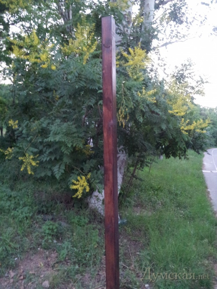 Таинственные деревянные столбы появились на Трассе здоровья по пути от шлагбаума к пляжу «Дельфин».