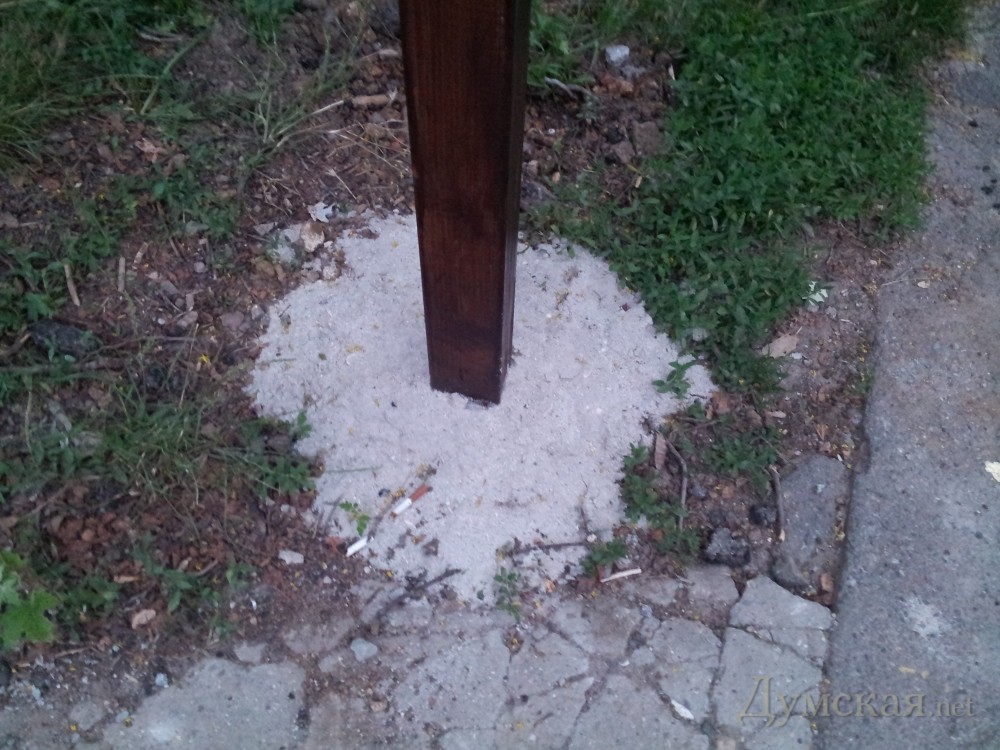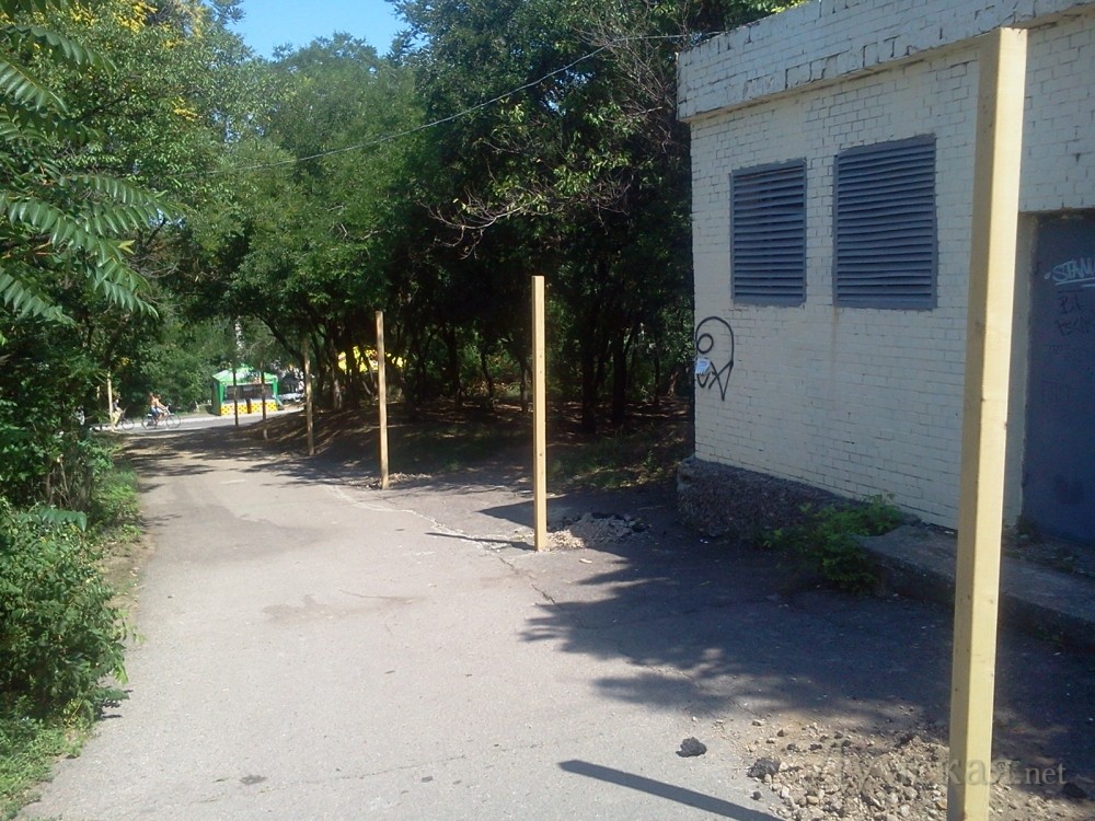 Как сообщили «Думской» читатели, колышки установили несколько дней назад, а на следующий день покрыли лаком. «Похоже на подготовку для монтажа забора», — предположили наши умудренные опытом читатели.