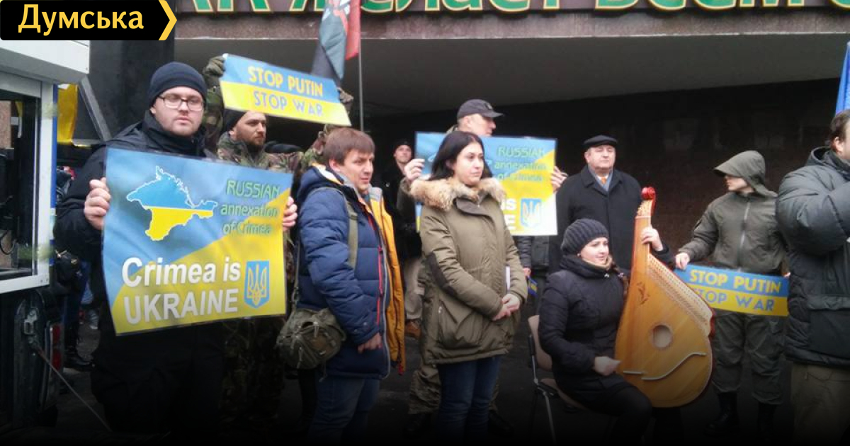 Активисты партий ДИЯ, организации «Автомайдан», «Самооборона» и других выступили с лозунгами «Стоп, Путин! Стоп война!», «Крым — это Украина». С собой активисты привезли звуковое оборудование, а также бандуристов. Как сообщает одесский «Автомайдан», цель акции — выступить против российской агрессии.