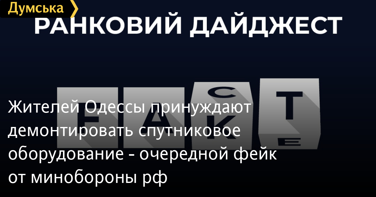 Жителей Одессы принуждают демонтировать спутниковое оборудование — очередной фейк от минобороны рфРоссияне не устают генерировать фейки и вбросы с целью манипуляции общественным мнением и на этот раз очередная попытка дезинформации касалась Одессы. Как сообщили в Центре противодействия дезинформации при СНБО Украины, минобороны рф объявило, что в «Одессе запретили работу провайдеров спутникового телевидения, которые транслируют российские и молдавские каналы». Более того, «жителей заставляют демонтировать спутниковое оборудование, а всех несогласных вывозят в неизвестном направлении». Также в минобороны рф поведали, что в Запорожье администрация «запретила эвакуацию гражданского населения. Любые попытки оставить город жестоко пресекаются боевиками тероброны, а тех, кто оказывает сопротивление, подвергают физическому насилию». Кроме того, российские пропагандисты запустили манипуляцию о том, что на сайте мо рф стартовал мультимедийный проект «Во власти преступного беспамятства» о преступлениях украинской власти против исторической памяти братских народов и «попытки забыть подвиги бойцов и командиров красной армии». По данным центра, эта информация запущена с целью манипуляции. СМЕРТЬ РОСІЙСЬКИМ ОКУПАНТАМ! Помітили помилку? Виділяйте слова з помилкою та натискайте control-enter |