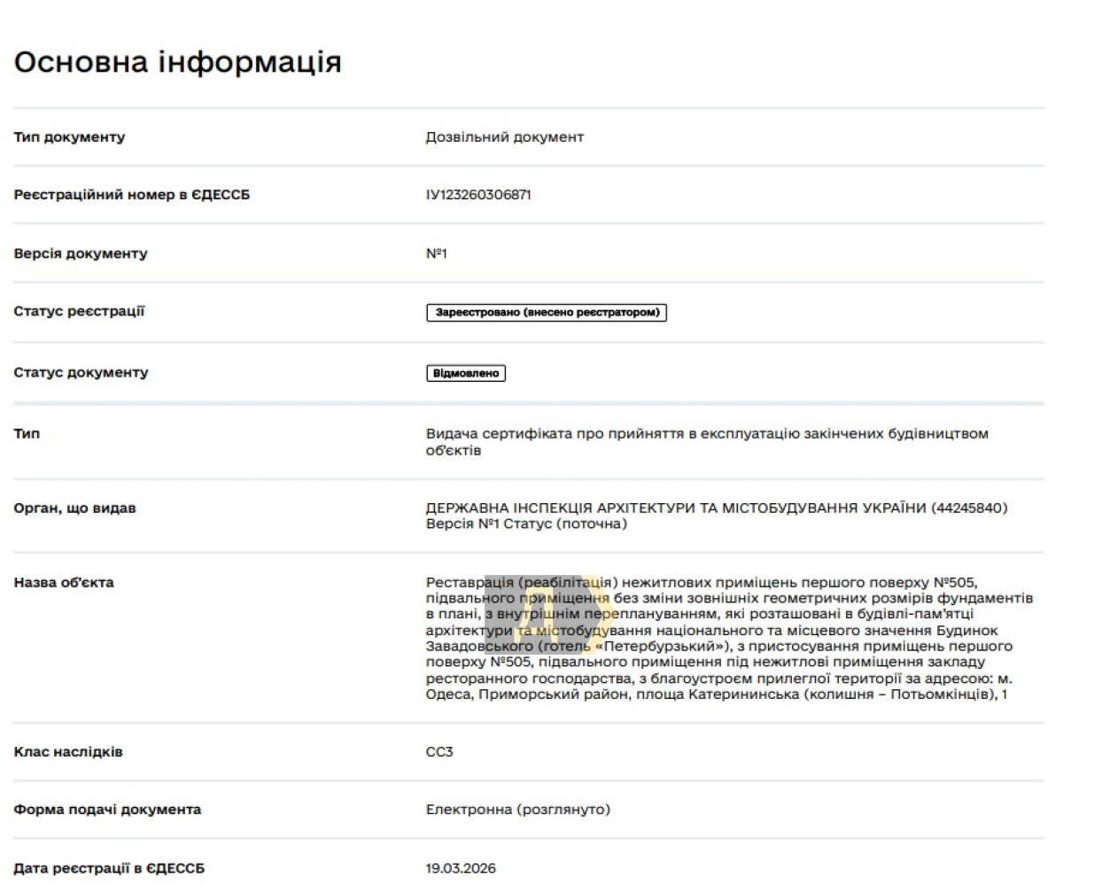 Тим часом, у середині березня з майбутнім «Маком» стався не до кінця зрозумілий конфуз: замовник реконструкції та власник приміщення, компанія «Фудмаркет» одесита Валерія Вайнермана подала до Державної інспекції архітектури та містобудування України заявку на прийняття об'єкта… в експлуатацію. Мовляв, все готово, давайте свідоцтво.