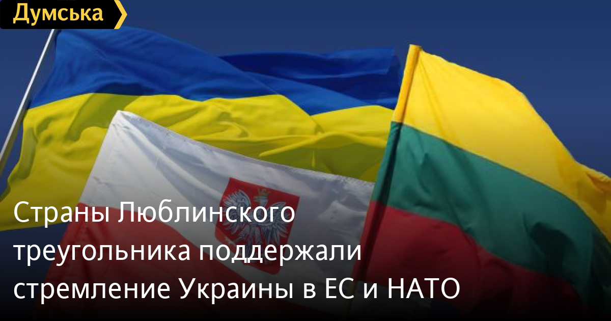 Министры иностранных дел стран «Люблинского треугольника» поддержали стремление Украины получить членство в ЕС и НАТО. Об этом сообщил глава МИД Украины Дмитрий Кулеба. Главы дипломатий Украины, Литвы и Польши подписали декларацию о совместном историческом наследии и общих ценностях. «В этом документе мы констатируем то, что объединяет наши страны не только в прошлом, но и будущем. В будущем это, безусловно, единая Европа. И Литва, и Польша в этой декларации подтверждают, что будут прилагать все усилия, чтобы Украина стала членом НАТО и ЕС, поддерживают Крымскую платформу, осуждают российскую агрессию против нашего государства», — отметил Кулеба. Кроме того главы МИД согласовали дорожную карту развития «Люблинского треугольника», в которую входят такие вопросы, как экономика и противодействие гибридным угрозам, и план мер по противодействию дезинформации. СМЕРТЬ РОССИЙСКИМ ОККУПАНТАМ! Заметили ошибку? Выделяйте слова с ошибкой и нажимайте control-enter |
