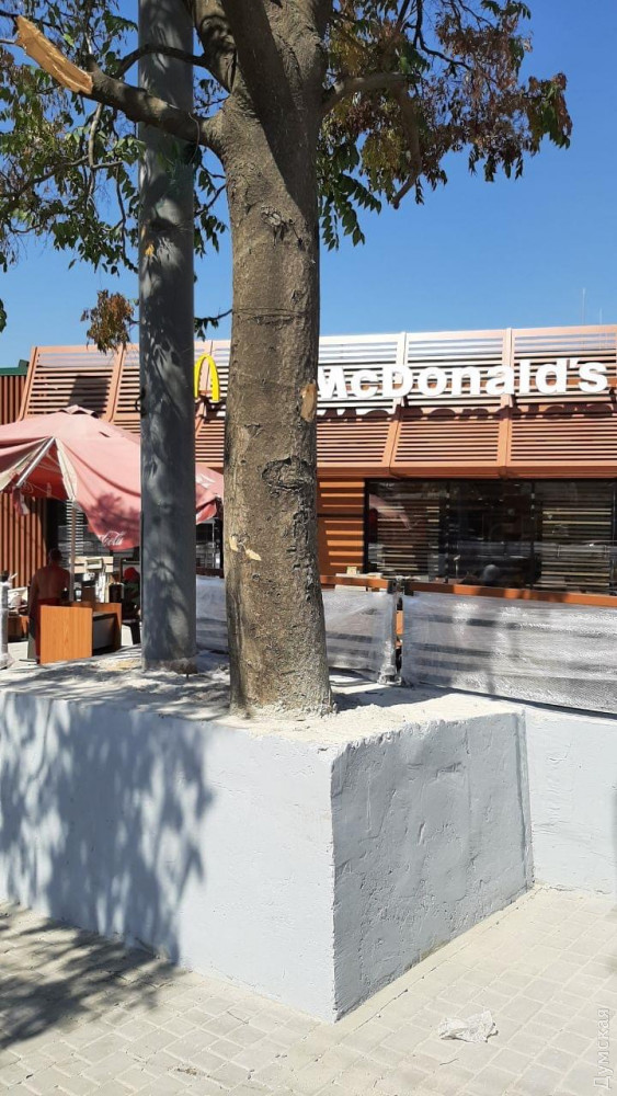 Строители нового одесского «Макдоналдса» закатали дерево в бетон