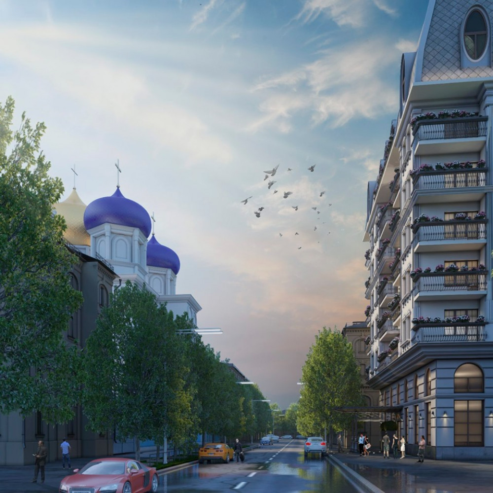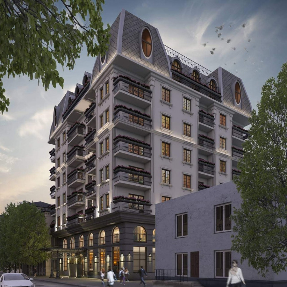 Мне новый проект нравится — выглядит стильно и «по французски», для центра Города — то-что надо! Этажей вижу семь, плюс жилой чердак — почти как в Париже. С удовольствием с семьей жили бы в таком доме, однозначно лучше соседских столетних развалюх