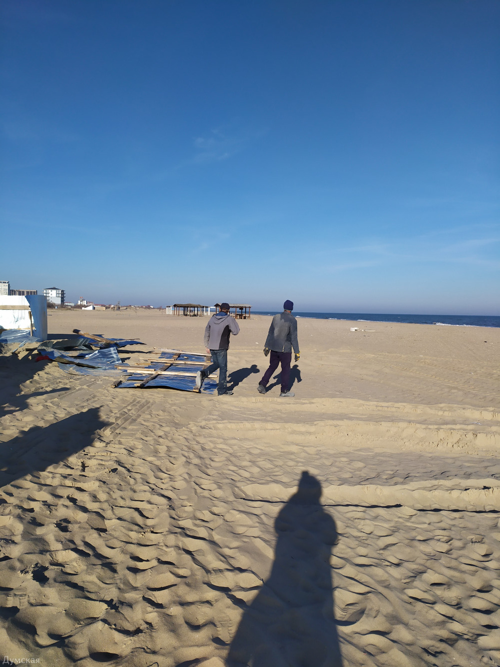 Вражеский беспилотник упал прямо на пляж Ланжерон Взрывной волной повреждены несколько заведений, которые в зимний сезон были закрыты. По территории разбросаны обломки дрона, образовалась крупная воронка очевидцы подходят и осматривают место происшествия.