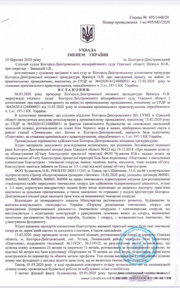 Арендатором данного пляжа является Наталья Чудакова — супруга предпринимателя Александра Чудакова, который вместе с экс-начальником одесской полиции Головиным фигурировал в деле о пропаже сигарет на 50 млн грн.