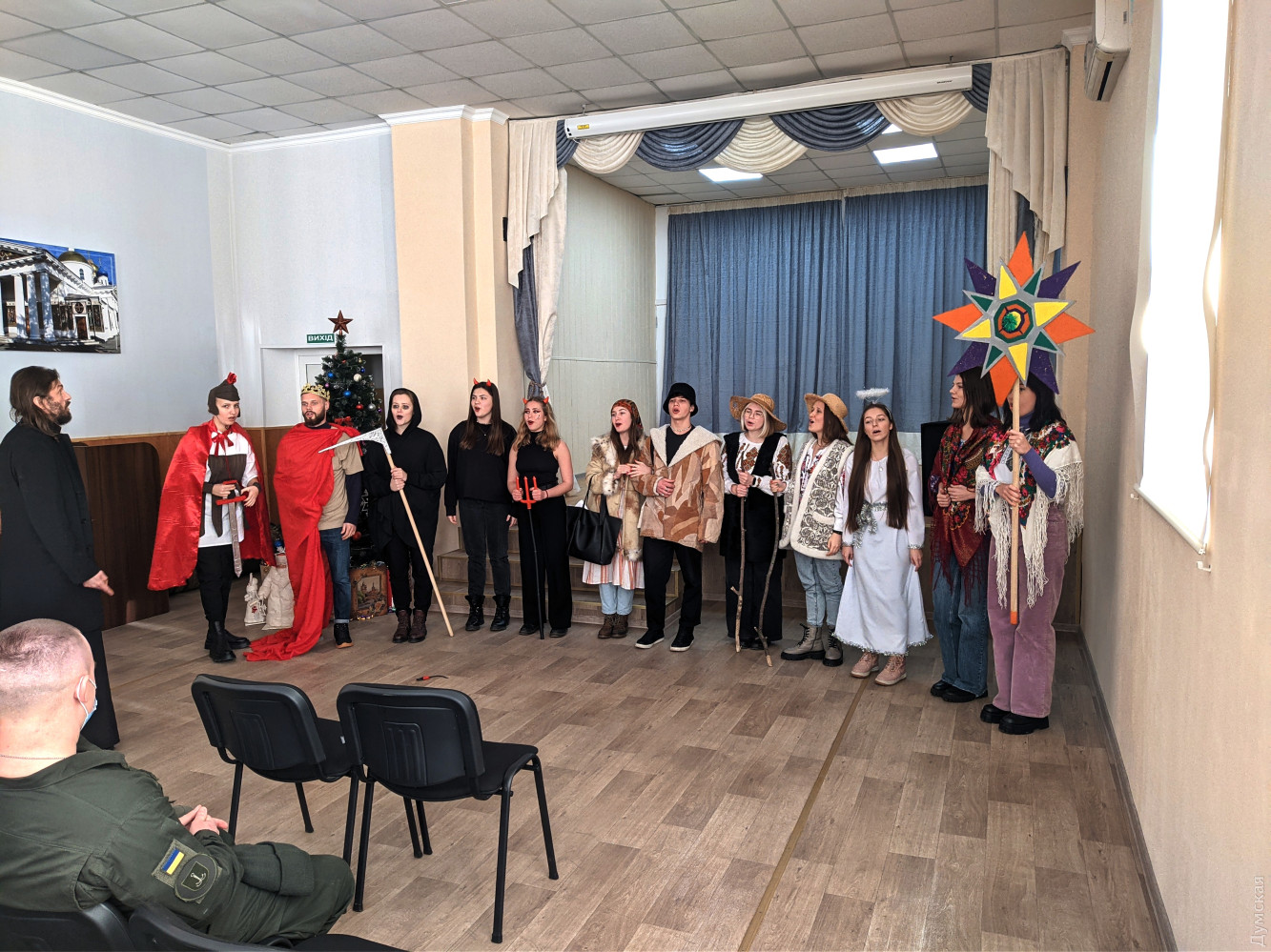 «Різдво разом»: студенти з різних областей України зустріли свято в Одесі (фото, відео)Студенти з багатьох міст України приїхали на святкування Різдва до Одеси. Традиційну поїздку за проектом «Різдво разом» організувала організація «Студентське братство». Чотири десятки молодих людей провели декілька днів в різних містах області та відсвяткували з одеситами. Кореспонденти «Думської» разом з гостями відвідали військову частину Національної гвардії України на Люстдорфській дорозі. Студенти організували для гвардійців справжній вертеп, з усіма традиційними персонажами та з алюзіями на поточні події, а також підняли настрій глядачів різдвяними співами. Такі невеличкі вистави вони проведуть сьогодні також для військових моряків, парафіян храму апостола Андрія, ізмаїльських прикордонників, курсантів інституту ВМСУ, Одеського університету внутрішніх справ, а також для мешканців Ізмаїлу, які зібралися на площі Перемоги. «У «Студентьского братства» є багато цікавих проектів, — розповіла нашому кореспонденту одна з учасниць вистави, студентка Українського католицького університету, яка виконувала роль Чорта. — Серед них - «Різдво разом» та «Великдень разом», коли групи студентів виїжджають на свята в різні міста країни. Ми вже були у Сумах та в Запоріжжі. Минулого року планували колядувати в Херсоні — на жаль, не поїхали через карантин, але були там на Великодні. І ось цього року — в Одесі». Зі слів студентів, ці свята вийшли дуже веселими та насиченими. Деякі зізналися, що святкують Різдво вперше у житті. Поїздка дозволила їм познайомитися не лише з нашим містом, але й з українськими різдвяними традиціями. Фото, відео — Анастасія Діброва СМЕРТЬ РОССИЙСКИМ ОККУПАНТАМ! Заметили ошибку? Выделяйте слова с ошибкой и нажимайте control-enter |