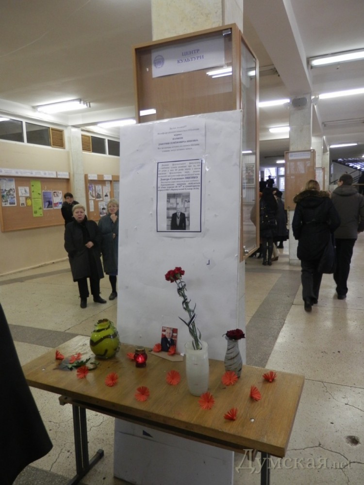 Гражданская панихида в память погибшего доцента кафедры русского языка ОНУ Дмитрия Ищенко состоялась 23 января в гуманитарном корпусе университета на Французском бульваре. Как передает корреспондент «Думской», проститься с ученым пришли около 200 человек, среди которых были близкие Дмитрия Семеновича, его студенты и сотрудники одесских вузов. Напомним, трагедия произошла 19 января . 80-летний Дмитрий Ищенко выбросился из окна своего кабинета на четвертом этаже, после чего скончался в военном госпитале, не приходя в сознание. «Это был наш любимый преподаватель, все студенты его любили и очень уважали. Мы до сих пор не можем поверить, что он мог пойти на такой шаг, будучи жизнерадостным и верующим человеком», — говорят студенты 4-го курса кафедры русского языка. Декан филологического факультета профессор Евгений Черноиваненко сказал, что Дмитрий Семенович работал в университет с 1979 года и теперь навсегда останется в истории вуза. «Он любил кафедру, был очень востребован и пользовался уважением у коллег и студентов. Когда мы поставили на факультете «ящик доверия», то вместо жалоб мы обнаружили там письма с благодарностями от студентов о лекциях Дмитрия Ищенко», — вспоминает он. Тем временем студенты говорят, что в последнее время Дмитрию Семеновичу намекали об уходе на пенсию: «Чувствовалось, что его перестали воспринимать, будто он уже на пенсии. Бывало, он не мог начать лекцию, потому что все аудитории были заняты, и никто ему не уступал. Он не хотел уходить», — утверждает студентка Екатерина. По словам учащихся, семья Ищенко испытывала и финансовые трудности – не хватало денег на ремонт выделенной квартиры на Французском бульваре . «А взяток он никогда не брал», — заявила девушка. Похороны ученого состоятся на Западном кладбище. СМЕРТЬ РОСІЙСЬКИМ ОКУПАНТАМ! Помітили помилку? Виділяйте слова з помилкою та натискайте control-enter |