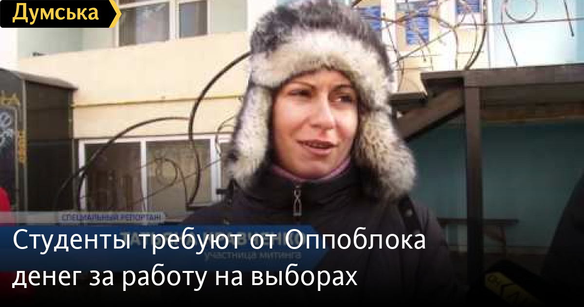 Студенты против Оппоблока. Молодые люди, которым не заплатили за работу на выборах, хотели попасть на прием к представителям Оппозиционного блока. Однако этого им сделать не удалось СМЕРТЬ РОССИЙСКИМ ОККУПАНТАМ! Заметили ошибку? Выделяйте слова с ошибкой и нажимайте control-enter Думская ТВ. Сюжеты: