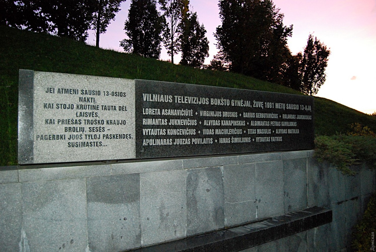 В Вильнюсе мы заехали к телецентру. В январе 1991 года, после провозглашения независимости, московские власти пытались «навести порядок». В город ввели войска, и в ходе столкновений под телебашней погибли 13 безоружных патриотов. Я стоял возле монумента с именами погибших, вспоминал наши разговоры о гибридной войне, о пропаганде, о вещании российских каналов. И думал о том, что борьба за независимость Литвы еще не завершена.