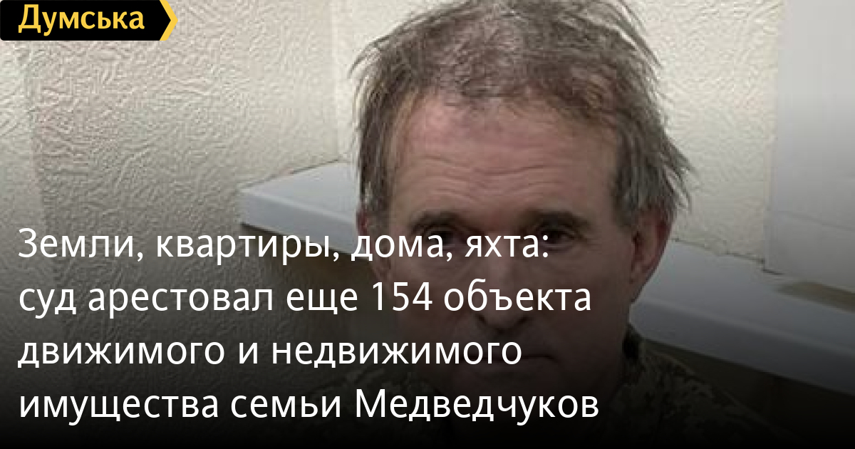 Земли, квартиры, дома, яхта: суд арестовал еще 154 объекта движимого и недвижимого имущества семьи МедведчуковЕще 154 объекта движимого и недвижимого имущества народного депутата Украины Виктора Медведчука и его супруги Оксаны Марченко арестованы Лычаковским районным судом Львова 13 апреля. Как сообщает пресс-служба Государственного бюро расследований, среди арестованного — 26 автомобилей, 30 земельных участков, 23 дома, 32 квартиры, 17 паркомест и моторная яхта. Под арест также попали доли в уставных капиталах 25 компаний, бенефициарным владельцем которых выступает Медведчук или его жена. Напомним, кума путина и нардепа Медведчука, председателя политсовета пророссийской партии ОПЗЖ, подозревают в государственной измене и содействии деятельности террористической организации. 12 апреля его задержали правоохранители. По данным СБУ, сбежавший из-под домашнего ареста Медведчук пытался попасть в «Приднестровье», а оттуда — в Москву. Побег ему организовала якобы фсб рф. СМЕРТЬ РОССИЙСКИМ ОККУПАНТАМ! Заметили ошибку? Выделяйте слова с ошибкой и нажимайте control-enter |