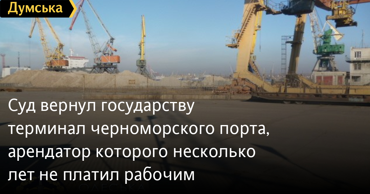 Суд вернул государству терминал черноморского порта, арендатор которого несколько лет не платил рабочимХозсуд Одесской области разорвал договор аренды второго терминала Морского торгового порта «Черноморск» и вернул его в пользование госпредприятия. Об этом сообщили в областной прокуратуре. Напомним, второй терминал находился в аренде у фирмы «Европиан Агро Инвестмент Юкрейн», которая взяла обязательства перед Министерством инфраструктуры привлечь инвестиции в размере 250 миллионов долларов и создать перегрузочный комплекс мощностью 1,5 млн тонн в первый год и до 8 млн тонн в дальнейшем. Компания не только не выполнила эти обещания, но с октября 2019 года не платила зарплату 180 работникам терминала. Прошлым летом долг перед портовиками составлял более 15 млн грн. СМЕРТЬ РОССИЙСКИМ ОККУПАНТАМ! Заметили ошибку? Выделяйте слова с ошибкой и нажимайте control-enter |