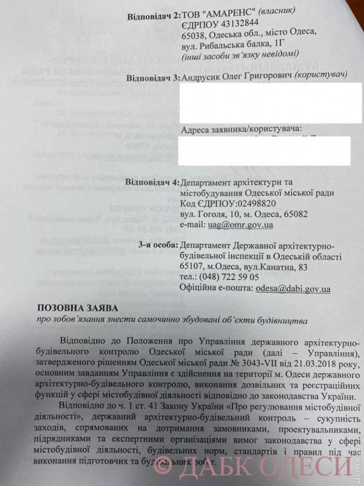 Строительство многоквартирного дома по адресу Рыбачья балка, 1 в районе Дачи Ковалевского приостановлено по решению Киевского районного суда Одессы.