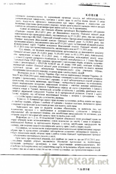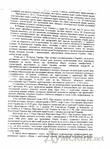 «Мы проводим массовые мероприятия в центре города уже 20 лет. И не собираемся отменять этой традиции даже в связи с решением суда — это мирное мероприятие. Мы не устраиваем никаких беспорядков, — поясняет Царьков, — а запрет был выдан в связи с тем, что наши идеологические враги из «Свободы» подали заявку на проведение своих мероприятий в одно время и в одном месте с нашими».