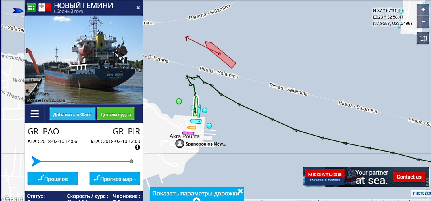 Вчера вечером сухогруз New Gemini, принадлежащий компании из Черноморска SC Prestige LTD, потерял ход недалеко от острова Крит и был отбуксирован в ближайший греческий порт Пирей. Судно шло из Новороссийска в Тунис с 3 тысячами тонн пшеницы на борту. Пока до конца не понятно, что именно стало причиной буксировки. Возможно, судно было задержано греческими властями.