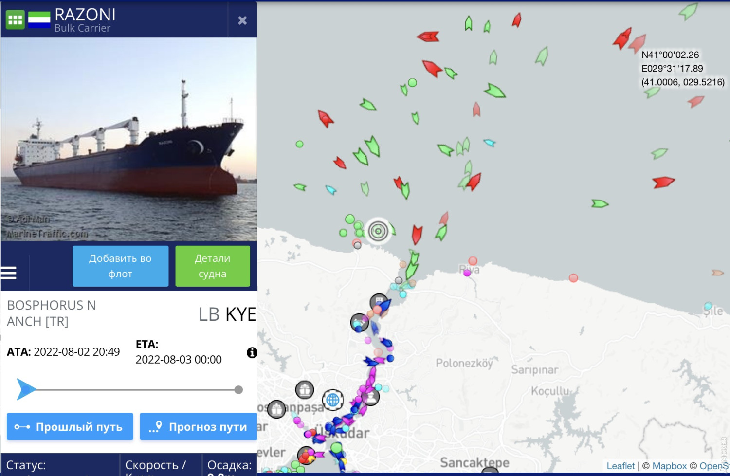 Балкер Razoni, який вранці 1 серпня першим з початку повномасштабної війни вийшов з одеського порту і попрямував узгодженим з ООН та Туреччиною безпечним коридором у напрямку протоки Босфор, щойно досяг своєї мети. За даними трекера судноплавства MarineTraffic, судно зараз знаходиться біля турецького берега в районі Стамбула і готується пройти через Босфор у Середземне море. Звідти судно з 26 тисяч тонн української кукурудзи піде до Лівану. СМЕРТЬ РОСІЙСЬКИМ ОКУПАНТАМ! Помітили помилку? Виділяйте слова з помилкою та натискайте control-enter |