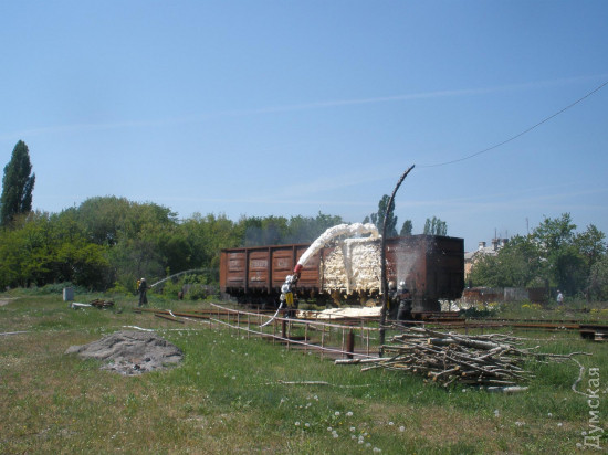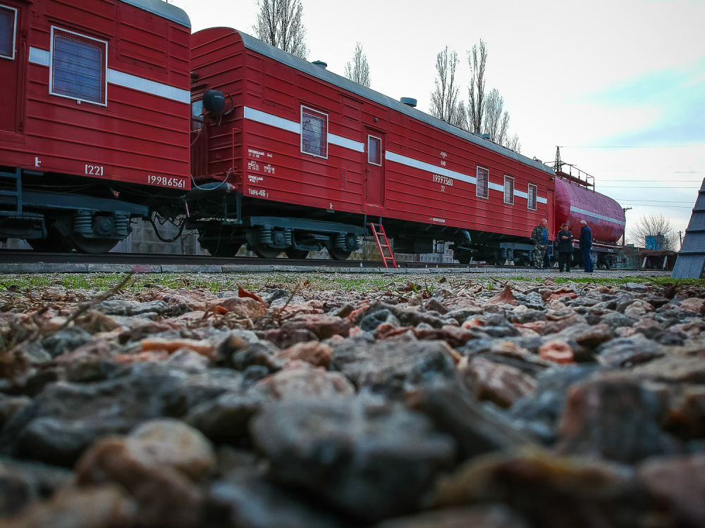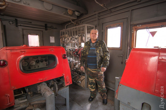 ШТАБ НА КОЛЕСАХ Собственная автомотриса должна быть и у начальства. Такой себе передвижной штаб. У Одесской железной дороги их два. По легенде, их интерьеры решили обновить и облагородить после обледенения под Подольском. Тогда начальнику ОЖД пришлось два месяца руководить работами, практически не покидая мотрисы. Вернувшись, он устроил разнос подчиненным, и вагон реконструировали. В нем оборудовали комфортабельный зал, полноценную кухню, улучшили оснащение купе, установили видеосистему и экстренную связь. У мотрисы две кабины. Один «пилот» сидит впереди, в специальном помещении, отделенном от зала заседаний небольшой перегородкой. Еще двое обеспечивают техническую поддержку в «хвосте». Сюда берут лучших из лучших. Оно и понятно, ведь возить начальство — работа ответственная. Нужно не только быть первоклассным машинистом, но и неплохо готовить. На Львовской железной дороге в штабном вагоне предусмотрена опытная бортпроводница, в нашем все попроще, и кашеварят те же люди, что обеспечивают движение. Выезжают штабные мотрисы по двум причинам: чтобы шеф мог руководить устранением последствий ЧП на месте или на плановые комиссионные объезды. Они происходят весной и осенью. Тогда в вагон набиваются начальники всех служб — это порядка 30-40 человек — и выезжают осматривать каждый метр, находящийся в ведении ОЖД. А это ни много ни мало больше четырех тысяч километров. «В 2003 году штабную автомотрису арендовала одесская киностудия, — рассказывает машинист-инструктор с 17-летним стажем Сергей Корнелюк. — На ней ездил режиссер для выбора локаций. Потом на двух перегонах фильм снимали. А вообще, удовольствие не из дешевых: на один километр уходит почти литр солярки». КРАСНЫЙ БРОНЕПОЕЗД Единственный поезд, которому штабная автомотриса обязана предоставлять приоритет в движении, – пожарный. Еще бы, ведь если на железной дороге что-то горит, то счет идет на минуты. У Одесской железной дороги — восемь пожарных поездов. Мы побывали на том, который отвечает за самый сложный участок – от Одесского порта до «Южного», включая саму Одессу. Это 171 километр путей. Здесь самая большая концентрация опасных грузов. Поезд, снизу до верху выкрашенный в ярко-красный цвет, состоит из пяти вагонов. Два из них – это бывшие емкости для транспортировки жидких грузов вроде вина или масла, утепленные и переоборудованные для хранения воды. По сути, это небольшое озеро на колесах. В цистернах хранится столько же воды, сколько в 72 (!) пожарных автомобилях – 120 кубов. Летом к составу присоединяют еще одну емкость, увеличивая запас воды на треть. Сердце пожарного поезда — две мотопомпы, способные подавать 1600 литров воды в минуту. Есть еще одна, переносная, на 800 литров. В специальных баках – семь тонн пенообразователя для тушения горючих жидкостей, битумов, смол. «При среднем расходе 360 граммов пенообразователя на пять с половиной литров воды, хватит на пожар любой сложности, и еще на пенную вечеринку останется», — шутят пожарные. В одном из вагонов — собственный пожарный автомобиль повышенной проходимости. Главное, конечно, не техническое оснащение, главное — люди. Именно они становятся на пути огненной стихии и, рискуя собственным здоровьем, а подчас и жизнями, не дают пламени распространиться. Штат поезда — 21 человек, в карауле дежурят пятеро: начальник отделени