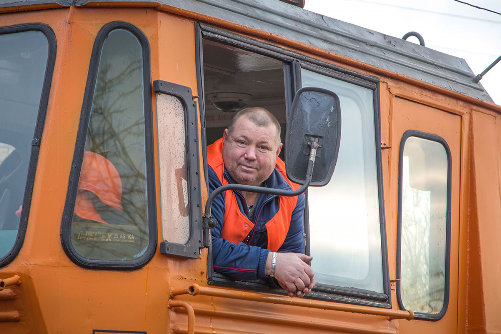 Подвижной состав Одесской железной дороги — это тысячи единиц самой разнообразной техники. Кроме обычных локомотивов и вагонов, есть в хозяйстве ОЖД и несколько специальных поездов, способных расчищать рельсы от снега, поднимать упавшие под откос вагоны, восстанавливать разрушенные терактами и стихией пути, тушить пожары. Это довольно сложные машины, работать с которыми безумно интересно. «Думская» побывала на самых интересных «суперпоездах» ОЖД и познакомилась с людьми, которые ими управляют. ЖЕЛЕЗНОДОРОЖНЫЕ ДАМЫ Самые высокие — монтажно-восстановительные автомотрисы. По сути, это вышки на самоходных вагонах. Они помогают железнодорожникам развешивать осветительные приборы, восстанавливать оборванную контактную сеть, демонтировать и устанавливать опоры, перевозить небольшие грузы. В одесской бригаде самоходного подвижного монтажно-восстановительного состава таких автомотрис три. Все девочки — во всяком случае, машинисты бригады самоходного подвижного состава дали им женские имена. К примеру, ярко-оранжевая АДМ 454 - это Ульяна Владимировна, а желто-голубая АДМ-СКМ — Мария Максимовна. Последнюю машинист-инструктор Максим Чередниченко, в честь которого вышка получила отчество, собственноручно раскрасил в цвета национального флага еще пять лет назад. Изначально Максимовна была красно-белой. В разложенном состоянии «девочки» напоминают героев американского блокбастера – ощущение, что автоботы уже давно на нашей планете и помогать человеческой цивилизации начали именно с Одессы. У 454-ой два подъемника: двухколенная вышка высотой семь метров и монтажная площадка. У Марии Максимовны — одна, но зато какая! Ее подвижная двухколенная стрела способна поднимать монтеров на 18 метров. Таких всего две в Украине. Максимовна, шутят железнодорожники, приходит на помощь тогда, когда достать другими средствами уже невозможно. Где только не побывала Максимовна со своим экипажем. На приборной доске, как на холодильнике, — магнитики из всевозможных городов, где приходилось работать. Здесь и Кировоград, и Херсон, и Николаев. «Самое сложное и красивое — это гололед, — рассказывает Максим Чередниченко. — Три-четыре года назад в районе Котовска (сейчас Подольск) было жуткое обледенение. Контактный провод сечением 12 мм стал с кулак толщиной. Все попадало. Мы тогда больше месяца ездили, восстанавливали обрывы. Красиво — каждая травинка и веточка во льду. Но лучше такого не видеть». Максим работает на железной дороге уже 17 лет. Сразу после техникума трудился слесарем подвижного состава, потом машинистом. «С этого начинают практически все, кто решил связать свою жизнь с железной дорогой, — говорит с улыбкой инструктор. — Железная дорога затягивает». Кстати, пока вы читаете эти строки, Максим Чередниченко со своей автомотрисой поднимают рухнувшие от непогоды опоры линии электропередачи на юге Одесской области.