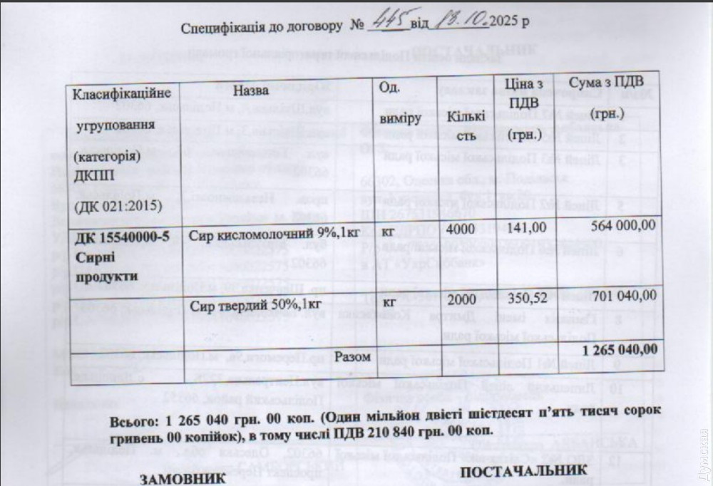 Сімейний підряд: дружина голови Подільська поставила молочку для дітей міста з наваром у півмільйона гривеньСотні тисяч гривень переплатила мерія Подільська на закупівлі сиру та сиру для освітніх установ міста. Переможцем тендеру стала фірма дружини в.о. мера Олега Албанського. Зазначимо, що це не перший раз, коли дружина міського голови виграє підряди від Подільської міськради на забезпечення продуктами харчування шкіл і дитячих садків. Раніше ми писали про переплату сотні тисяч гривень ФОП Олександри Албанської на закупівлі вершкового масла. Цього разу «Думська» виявила тендер на поставку сиру і сиру, проведений 13 жовтня управлінням освіти і гуманітарної політики Подільської міськради. З трьох претендентів, цілком очікувано перемогу здобув ФОП Албанської. Подільські чиновники вирішили порадувати школярів і малюків з дитячих садків сиром і сиром на загальну суму понад 1,2 млн грн.