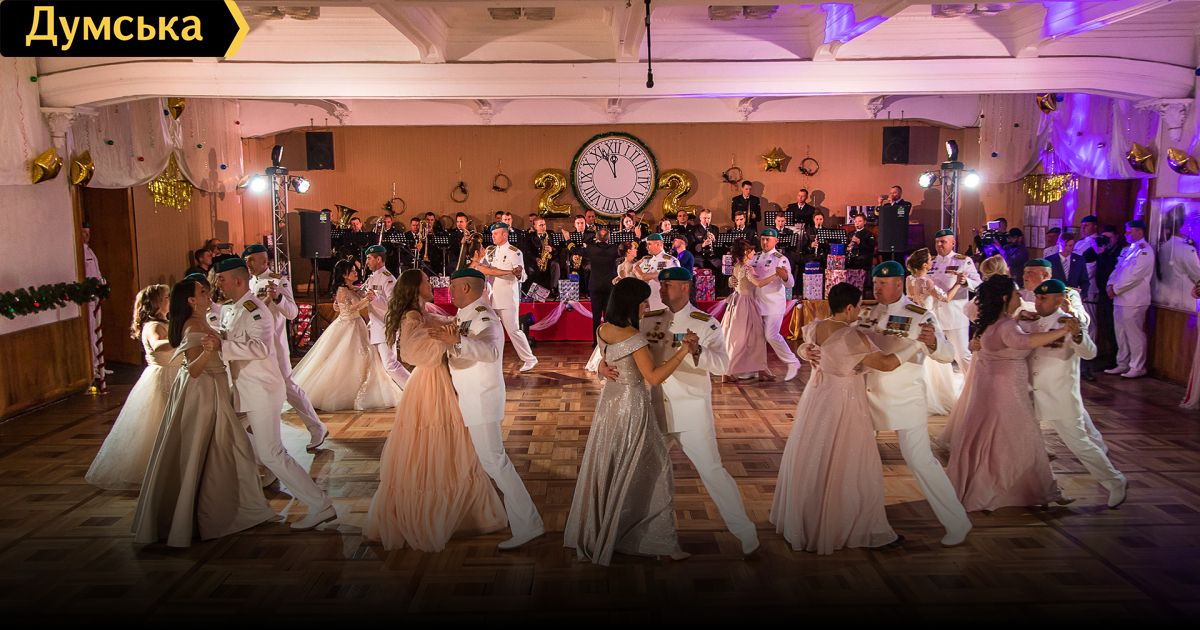 Главный зал Дома офицеров погружен в темноту. По периметру помещений, у стен стоят заинтригованные зрители и приглашенная пресса. Под огромными часами, показывающими без пяти минут полночь, шуршит партитурами военный оркестр. Начинает играть музыка и в зал входят главные герои сегодняшнего праздника – Первого новогоднего офицерского бала, организованного военнослужащими 35-й отдельной бригады морской пехоты имени контр-адмирала Михаила Остроградского. Суровые морпехи в белой парадной форме и их прекрасные хрупкие половинки в умопомрачительных вечерних платьях скользят по паркету, держа в ладонях свечи. Подобное мероприятие вечером 24 декабря в Одессе состоялось впервые и для подготовки танца у морпехов и их спутниц было всего две недели. Помогал им в этом профессиональный хореограф, обучивший участников мероприятия базовым элементам и фигурам. Для старшего лейтенанта Ярослава Хтея сегодняшний вальс оказался вторым в жизни классическим танцем – первый раз он танцевал его на своей свадьбе. Для того, чтобы выучить все па суровый морпех и его жена — военный медик, дополнительно тренировались дома после основных репетиций. «Самое сложное было не учить новые движения, а доводить их до синхронности, чтобы все двигались одинаково, — признается морпех. — Этим достигается красота танца. Было тяжело запомнить, но получилось. Мы с женой все сложности встречаем вместе и всегда позитивно». «Это не первый мой бал, — призналась Юлия Сухаревская. – Мы организовывали три таких бала в 503-м (503-й отдельный батальон морской пехоты, дислоцирующийся в Мариуполе – ред.). Все участники — огромные молодцы, выкладывались на тренировках на все 100%. Бывало, конечно, что оттаптывали друг другу ноги, но все через это проходят. 35-я бригада – это большая семья, где все друг друга поддерживают». После небольшого перформанса со свечами, начинается классическая часть – старинный польский полонез, которым традиционно открывались торжественные танцевальные вечера. Полонез плавно перетекает в его величество Венский вальс. Напоследок участники бала удивили гостей исполнением номеров из спортивных бальных танцев. Лейтенант Юрий Маланчук признался, что самым сложным для него было выучить спортивный танец, но вместе с тем это прекрасная психологическая разгрузка, своеобразный моральный отдых. «Каждый военнослужащий объединяет в себе множество профильных и не профильных специальностей, — уверен офицер. — Они могут быть спортсменами, художниками, музыкантами, певцами или уметь танцевать. После выполнения боевых задач, любой военнослужащий нуждается в психологической декомпрессии и такие мероприятия, как офицерские балы или товарищеские матчи по футболу очень полезны». В Одессе офицерский бал прошел впервые, но его организаторы надеются, что мероприятие станет традиционным и будет привлекать все больше участников. «Наша морская пехота защищает побережье от Мариуполя до Болграда, — рассказал журналистам командующий ВМС, контр-адмирал Алексей Неижпапа. — Первые балы были еще в Мариуполе. И сегодня он в Одессе. Мы редко можем надеть парадную форму, так как у нас идет война, и каждый день парни выполняют боевые задачи. Поэтому мы и организовываем такие мероприятия, где наши морпехи могут не только выполнять боевые задания в бронежилетах и касках, но и 