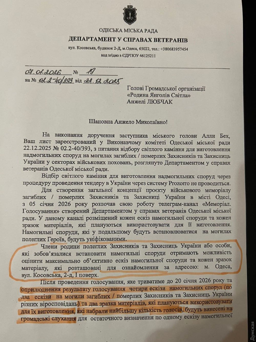 Раскол среди родных: в Одессе не могут договориться, какими будут надгробия погибших защитниковСектор военных захоронений на Западном кладбище пополняется почти каждый день, но город уже три года не может согласовать единый вид памятников. Споры идут не только в кабинетах мэрии, но и между семьями павших. 3 апреля на Биржевой площади пройдут общественные обсуждения образцов надгробий, однако анонс мероприятия уже вызвал скандал. Подробности выясняла «Думская». На обсуждение в мэрии выносят два варианта надгробий из серо-черного гранита: казацкий крест и волнообразную стелу. Часть родственников возмущена – они считают, что их лишили выбора. «Нам обещали провести общественные слушания, в ходе которых предполагалось рассмотрение различных вариантов надгробий, живая дискуссия и голосование за те или иные варианты, – рассказала «Думской» соосновательница общественной организации «Семьи ангелов Света» Ирина Орлянская. – Вместо этого городская администрация заявила общественные обсуждения и выносит единственный вариант, фактически на утверждение, правда при этом голосование не предусматривается. В реальности, людям доводят до ведома свои планы, получите – распишитесь». Родители павших героев настаивают на светлых тонах камня. По их мнению, черные плиты делают украинские военные кладбища неотличимыми от российских. «Фактически обесценивается то, за что воевали наши дети, за что погиб мой сын – закрепляется советская традиция хоронить под черным гранитом, именно так, как делают оккупанты. Но наши мальчики и девочки отдавали свои жизни за право жить иначе, за право быть свободными людьми», – говорит Олег, отец Героя Украины (посмертно) Остапа Макарова. У сторонников серо-черного варианта свои аргументы: цена и доступность. Белый камень в Украине – дефицит, его придется везти из-за границы, что ударит по бюджету и затянет сроки. «Наши оппоненты выступают за светлые тона и предлагают, в частности, вариант испанского камня, что существенно удорожает стоимость надгробия, кроме того, ставит родных погибших в зависимость от поставок этого камня. Сегодня они есть, а что будет завтра никто не знает. А война, увы, продолжается. В Украине нет залежей белого гранита, но есть серый, и при помощи шлифовки можно без проблем добиться нужных тонов. Это раз, во-вторых, это отечественный производитель, это рабочие места украинцев», – говорит представительница общественной организации «Живые в сердцах Юлия М. Глава этой же организации Олеся Суховерхова добавляет, что лишние деньги лучше направить на фронт. «Как жена погибшего военного, я против заграничных камней. Как волонтер, я категорически против, чтобы памятник моего мужа стоил миллион, когда его можно установить за 300 тысяч из украинского гранита, со всеми гарантиями, а на 700 тысяч – купить FPV-дроны, РЭБы, запчасти, дизельное топливо мобильным группам, чтобы они были более эффективными в обороне города», – отметила она и призвала родственников погибших прийти на общественные обсуждения и поддержать черно-серые образцы надгробий. Масла в огонь подлила путаница в регламенте. Ранее городская военная администрация обещала вынести на голосование четыре варианта, набравших больше всего голосов в Telegram-канале «Мемориал». Однако в итоге оставили только два, а статус «общественных слушаний