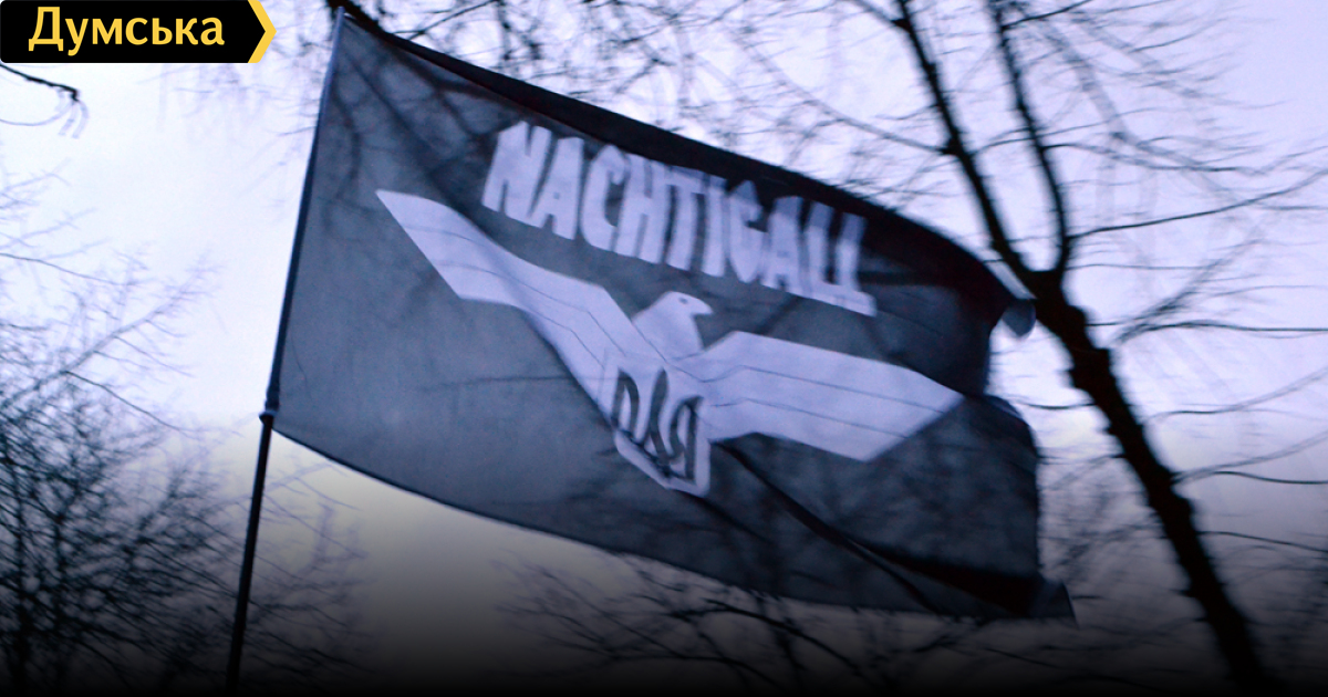 Футбольные фанаты и националисты прошли маршем по центральным улицам Одессы под флагами батальона СС «Нахтигаль» и с традиционными речевками.