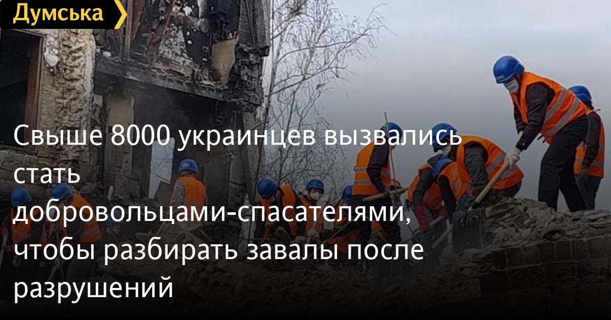 Свыше 8000 украинцев вызвались стать добровольцами-спасателями, чтобы разбирать завалы после разрушенийСвыше восьми тысяч граждан изъявили желание стать добровольцами-спасателями, чтобы помочь ГСЧС и местным властям в разборе завалов после освобождения населенных пунктов от российских нацистов. Как сообщает пресс-служба ведомства, такое количество желающих зарегистрировались за шесть дней. Больше половины — это жители Киева и Киевской области. Спасатели отмечают, что на сегодняшний день органы местной власти и самоуправления не в состоянии привлечь всех желающих одновременно из-за плотного минирования населенных пунктов и экосистем войсками рф, а также наличия многочисленных мин-ловушек и замаскированных взрывных устройств. Вспомогательные работы по разбору завалов начнутся после разминирования территории. СМЕРТЬ РОСІЙСЬКИМ ОКУПАНТАМ! Помітили помилку? Виділяйте слова з помилкою та натискайте control-enter |