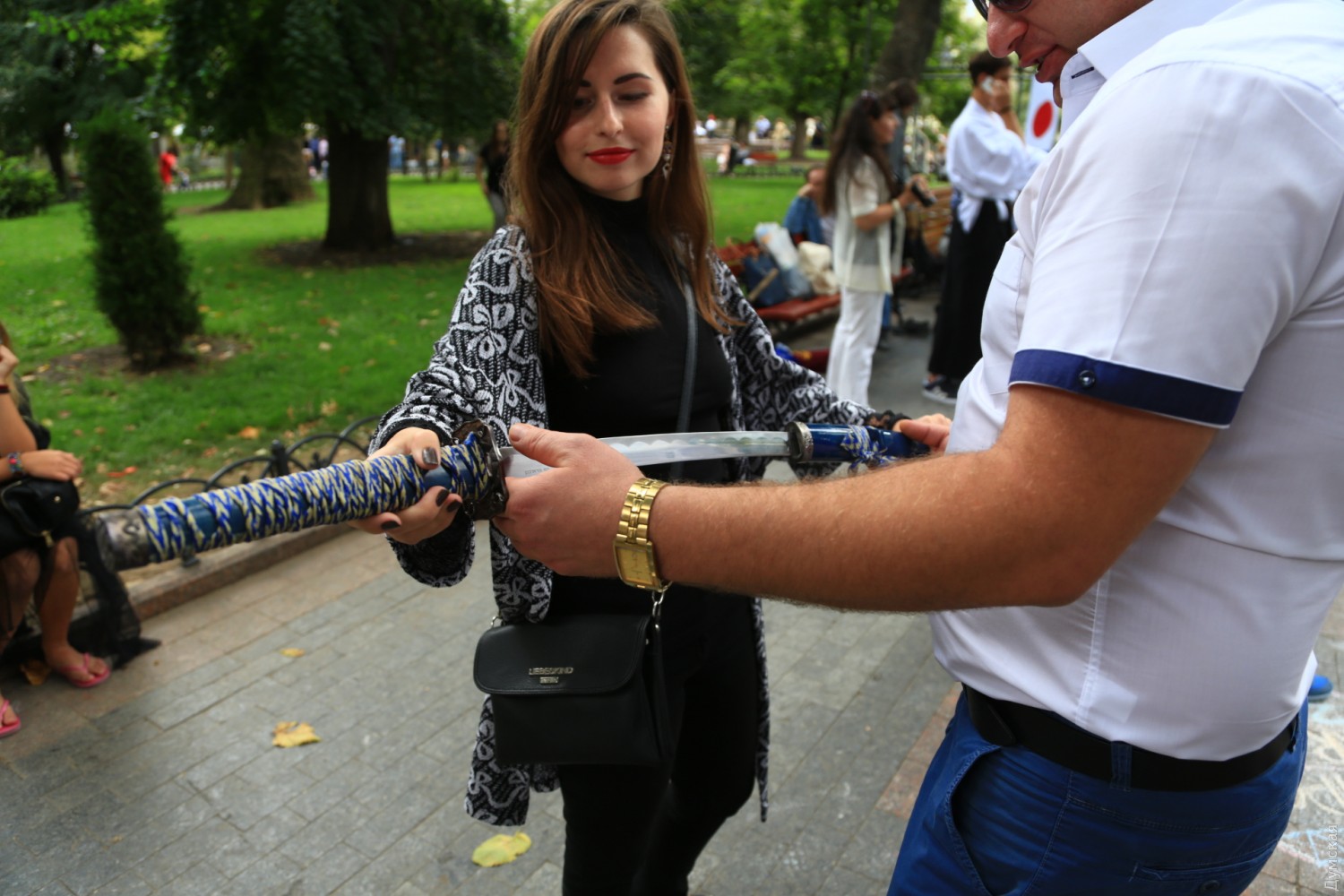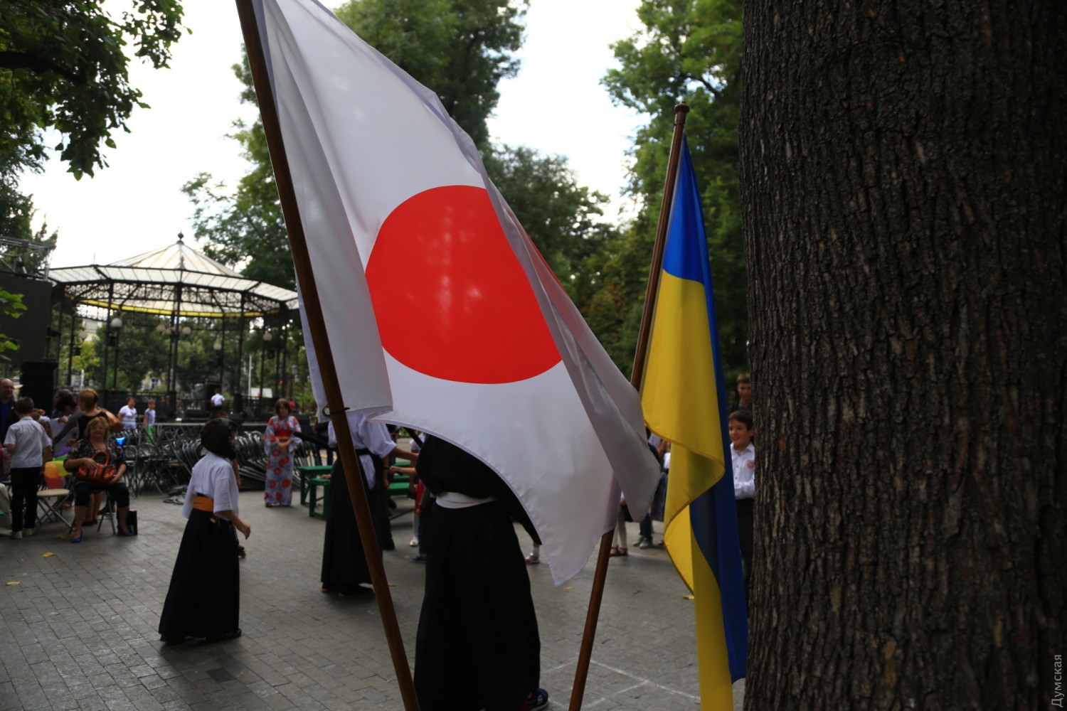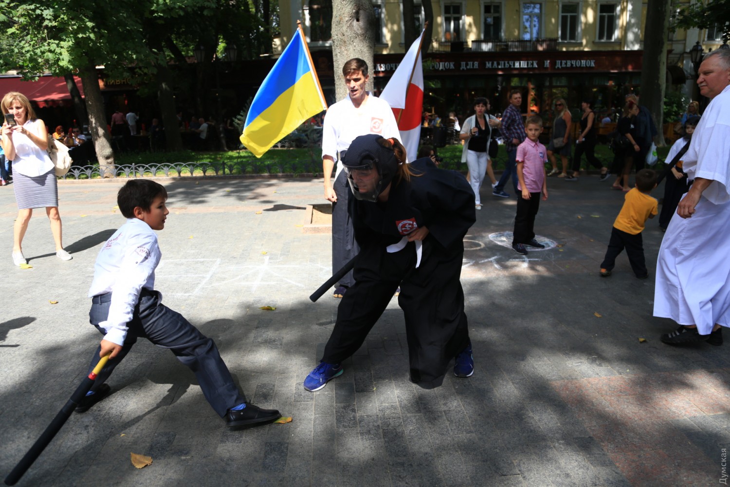Сякухати, чанбара и оригами: в Горсаду дрались на японских мечах и играли в ГоСегодня днем в Городском саду прошел небольшой фестиваль японской культуры. Организовали ее общественная организация «Японской клуб» и центр изучения японского языка при Одесском национальном университете. Самыми зрелищными оказались бои на японских спортивных мечах — танто (кинжал), кодати (короткий) и тёкен (длинный). Чтобы поучаствовать в чанбаре (так называется такой бой), собралась целая очередь из желающих. Мечи были мягкими, но после некоторых ударов соперники морщились от боли. Бои проходили под аккомпанемент японской флейты сякухати. Также зрители учились рисовать иероглифы, складывать бумажные фигурки оригами и занимались игрой в японские шашки Го. Фото — Сергея Смоленцева СМЕРТЬ РОСІЙСЬКИМ ОКУПАНТАМ! Помітили помилку? Виділяйте слова з помилкою та натискайте control-enter |
