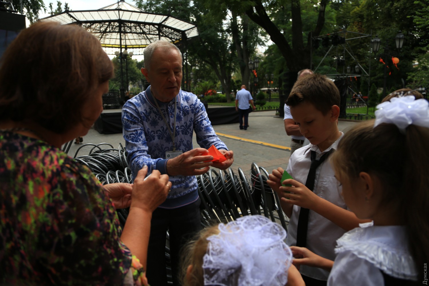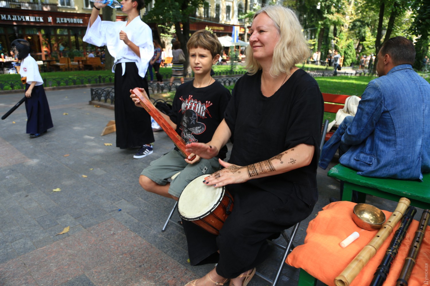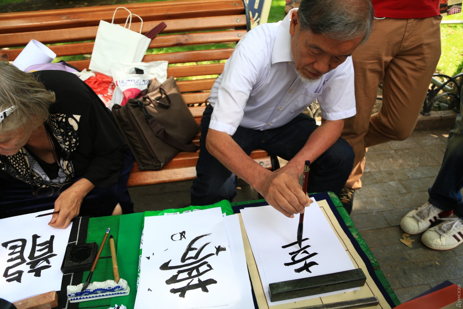 Сякухати, чанбара и оригами: в Горсаду дрались на японских мечах и играли в ГоСегодня днем в Городском саду прошел небольшой фестиваль японской культуры. Организовали ее общественная организация «Японской клуб» и центр изучения японского языка при Одесском национальном университете. Самыми зрелищными оказались бои на японских спортивных мечах — танто (кинжал), кодати (короткий) и тёкен (длинный). Чтобы поучаствовать в чанбаре (так называется такой бой), собралась целая очередь из желающих. Мечи были мягкими, но после некоторых ударов соперники морщились от боли. Бои проходили под аккомпанемент японской флейты сякухати. Также зрители учились рисовать иероглифы, складывать бумажные фигурки оригами и занимались игрой в японские шашки Го. Фото — Сергея Смоленцева СМЕРТЬ РОСІЙСЬКИМ ОКУПАНТАМ! Помітили помилку? Виділяйте слова з помилкою та натискайте control-enter |