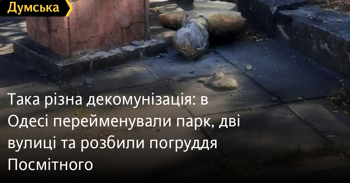 Така різна декомунізація: в Одесі перейменували парк, дві вулиці та розбили погруддя Посмітного