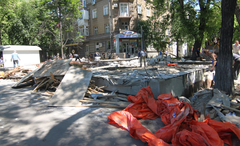 Мэр Одессы Алексей Костусев выполнил обещание, которое дал в среду, 25 мая, - сегодня сотрудниками коммунальных служб было демонтировано незаконное строение на углу проспекта Шевченко и проспекта Гагарина.