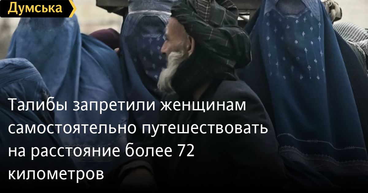 Талибы запретили женщинам самостоятельно путешествовать на расстояние более 72 километровВ Афганистане министерство по поощрению добродетели и предотвращению пороков, созданное после возвращения к власти движения Талибан, запретило женщинам путешествовать без сопровождения на расстояние более 72 километров. Об этом сообщает Укринформ со ссылкой на France24. «Женщин, путешествующих более 45 миль (72 километра), нельзя везти, если их не сопровождает близкий член семьи», — заявил официальный представитель министерства Садек Акиф Мухаджар. Он уточнил, что сопровождать женщину должен ее близкий родственник мужского пола. Также, согласно рекомендациям министерства, все владельцы транспортных средств в Афганистане могут предлагать поездки только тем женщинам, которые носят хиджаб. Всего несколько недель назад министерство попросило телеканалы Афганистана прекратить показ драм и сериалов с участием женщин-актрис. Новосозданное ведомство также призвало женщин-тележурналисток носить хиджаб во время работы на ТВ. Ранее движение Талибан распустило избирательную комиссию Афганистана из-за «отсутствия потребности». СМЕРТЬ РОССИЙСКИМ ОККУПАНТАМ! Заметили ошибку? Выделяйте слова с ошибкой и нажимайте control-enter |