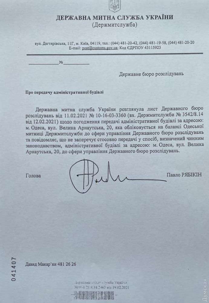 Таможенная служба передает ГБР пустующее пятиэтажное здание в центре Одессы (документ)Пустующее здание по адресу Большая Арнаутская, 20, где когда-то размещался региональный офис банка «Аваль», передадут Государственному бюро расследований. Как узнала «Думская», такое решение, удовлетворив просьбу ведомства, приняла Государственная таможенная служба, на балансе которой находится объект. Судя по всему, вместе со зданием ГБР отойдет и небольшой участок на углу Осипова, который много лет обнесен строительным забором. Интересно, что прошлым летом региональное отделение Фонда госимущества по Одесской и Николаевской областям предлагало включить пятиэтажку в список объектов малой приватизации, но таможенники выступили категорически против, и продажа здания не состоялась. СМЕРТЬ РОСІЙСЬКИМ ОКУПАНТАМ! Помітили помилку? Виділяйте слова з помилкою та натискайте control-enter |