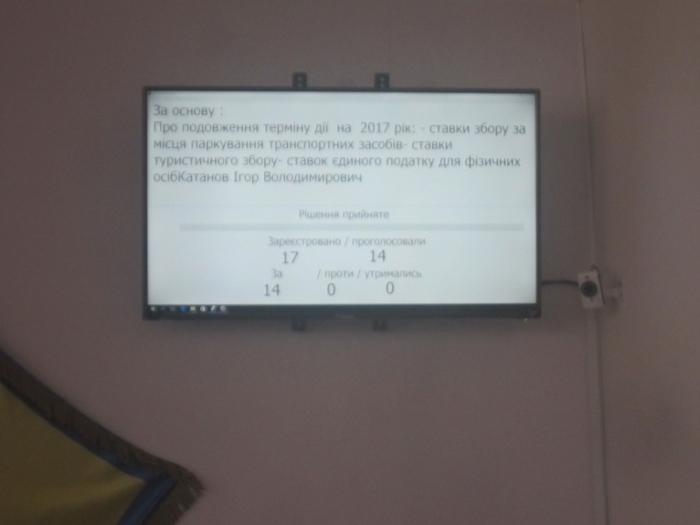 Татарбунарские депутаты больше не будут голосовать поднятием рук - появилась электронная системаДепутаты Татарбунарского городского совета протестировали электронную систему «Голос». Новая система голосования прошла «боевое крещение» 14 июля во время девятой сессии горсовета, пишет «ИзбирКом». Обращаясь к депутатам, мэр Андрей Глущенко сказал, что пересчет рук отнимает много времени — на одно голосование раньше уходило в среднем две минуты, а электронная система позволяет сократить время подсчета голосов до 5-7 секунд. Каждому из 26 депутатов вручили пульт с тремя кнопками («За», «Против» и «Воздержался»), а также персональную карту для голосования. На большой экран выводится порядковый номер вопроса повестки дня, его название и фамилия докладчика. Как обычно, депутаты голосовали сначала по поправкам, а потом по самому вопросу. После обработки данных результаты отображаются на экране. Теперь депутатам предстоит принять решение о внесении изменений в регламент городского совета, включив в него порядок электронного голосования. СМЕРТЬ РОСІЙСЬКИМ ОКУПАНТАМ! Помітили помилку? Виділяйте слова з помилкою та натискайте control-enter |