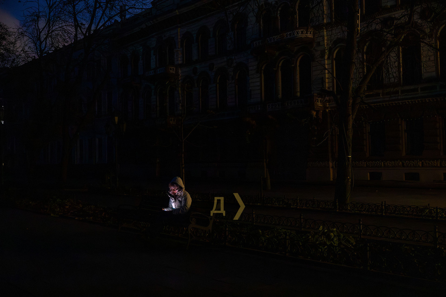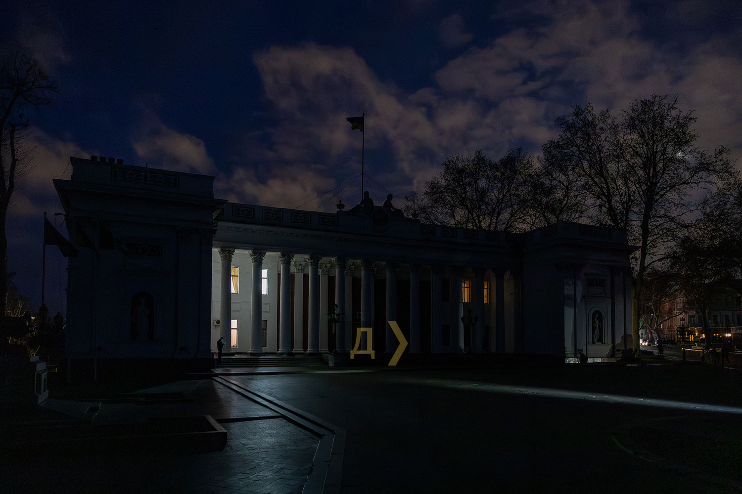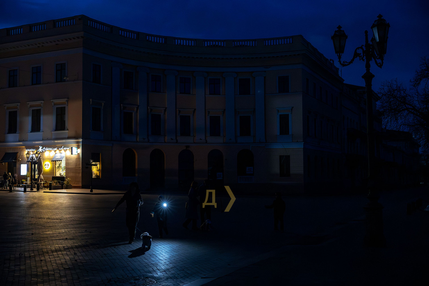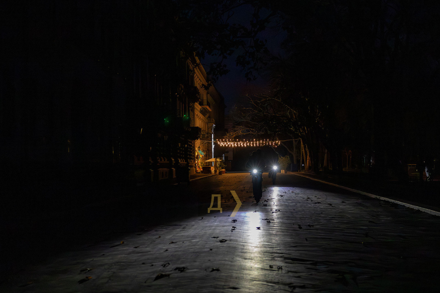 Чергова російська атака занурила центр Одеси у пітьму, заодно позбавивши тепла. Наслідки удару серйозні: деякі школи Приморського та Пересипського районів переведені на онлайн-навчання, а тяжких пацієнтів перевозять до лікарень інших районів. Частину електротранспорту зупинено, запущено соціальні автобуси. У цілодобовому режимі працюють пункти незламності. Фотокореспондент «Думської» прогулявся знеструмленим центром Одеси.