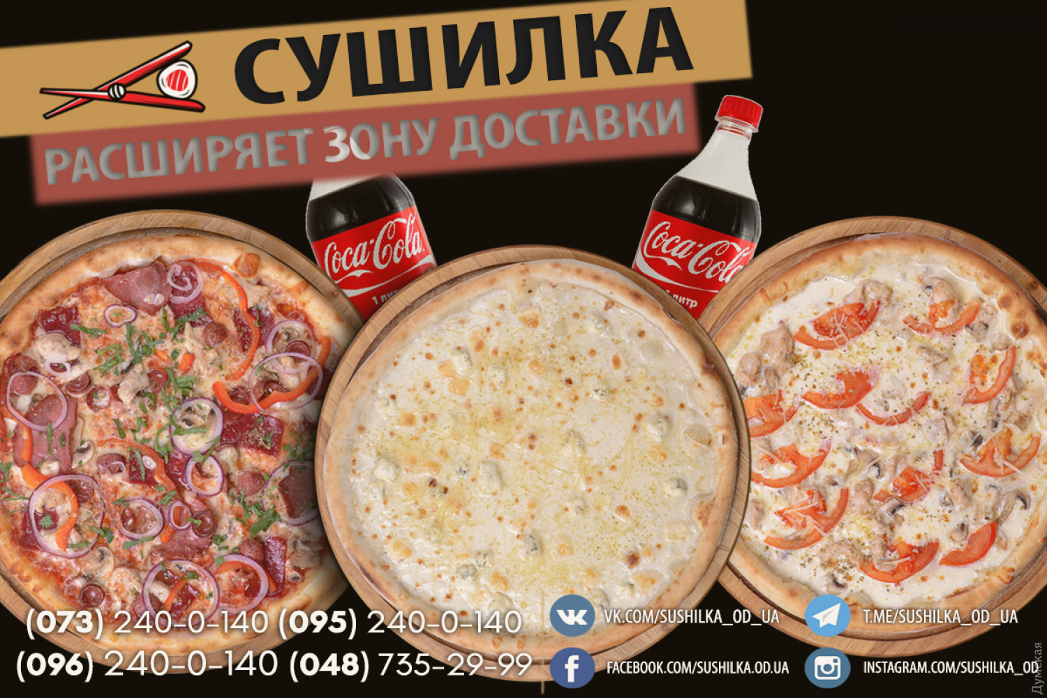 Теперь и на поселок Котовского: «Сушилка» расширила зону доставки (на правах рекламы)Служба доставки еды «Сушилка» расширила зону обслуживания и отныне работает по всему городу, в том числе и на поселке Котовского. Минимальная сумма заказа для доставки в данный район составляет 1000 гривен. Также клиентам сервиса доступны новые пицца-сеты, а именно сет «Горячая тройка», в состав которого входят пиццы «Сушилка», «4 сыра», «Курица с грибами» и две литровые Coca-Cola, а также сет «Пати на хате»: пиццы «Сушилка», «4 сыра», «4 мяса», «Верона», «Деревенская» и три литровых Coca-Cola. Кроме того, недавно «Сушилка» добавила в меню бургеры. Чтобы все желающие могли попробовать и насладиться их насыщенным вкусом, до конца февраля действует на данную продукцию 20% скидка. Узнать подробнее об акциях и сделать заказ можно на сайте sushilka.od.ua и по телефонам: 073-240-0-140; 095-240-0-140; 096-240-0-140; 048-735-29-99. СМЕРТЬ РОСІЙСЬКИМ ОКУПАНТАМ! Помітили помилку? Виділяйте слова з помилкою та натискайте control-enter |