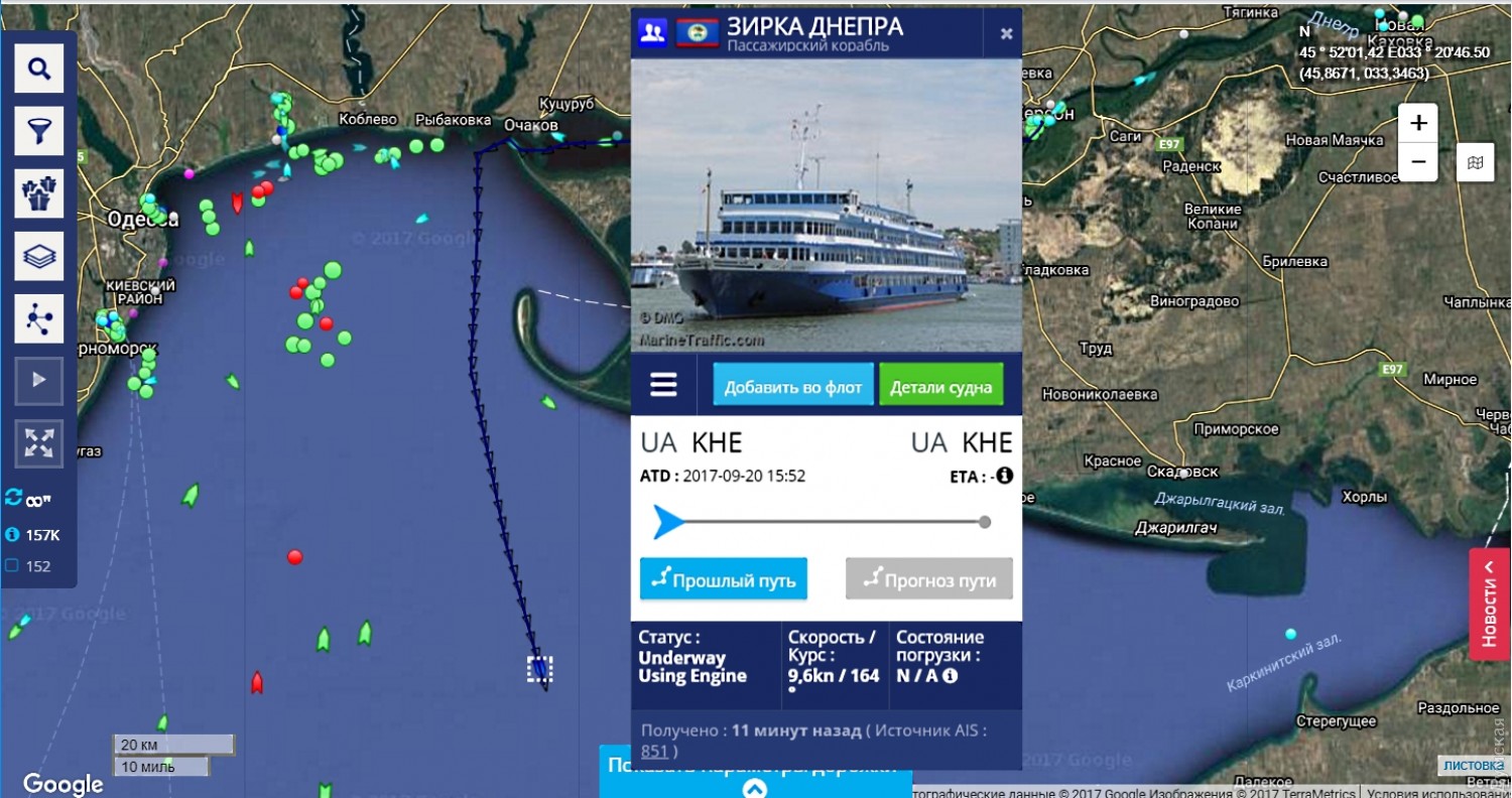 По следам «Генерала Ватутина»: теплоход «Зирка Днепра» движется в направлении оккупированного КрымаКруизный теплоход типа река-море «Зирка Днепра» в настоящее время движется в направлении Крыма. По состоянию на 11 часов судно идет в направлении южного берега оккупированного полуострова и находится на траверзе Севастополя. Судя по данным АИС, вчера днем около 15:00, теплоход вышел из порта приписки Херсон. Никаких круизов в данное время года заявлено не было. Владельцем значится все та же круизная компания «Червона Рута». Видимо, повторяется недавняя история с аналогичным путешествием «Генерала Ватутина», который был продан российским владельцам и, не заходя в Одессу, отправился в Ростов-на-Дону. Отметим, «Зирка Днепра» построена в 1988 году в бывшей ГДР. До 2005 года судно носило имя «Маршал Рыбалко». При длине 129 метров имеет водоизмещение около 5400 тонн. В свои 154 каюты может принять до 280 пассажиров. Максимальная скорость хода около 13 узлов. Экипаж 98 человек. СМЕРТЬ РОСІЙСЬКИМ ОКУПАНТАМ! Помітили помилку? Виділяйте слова з помилкою та натискайте control-enter |