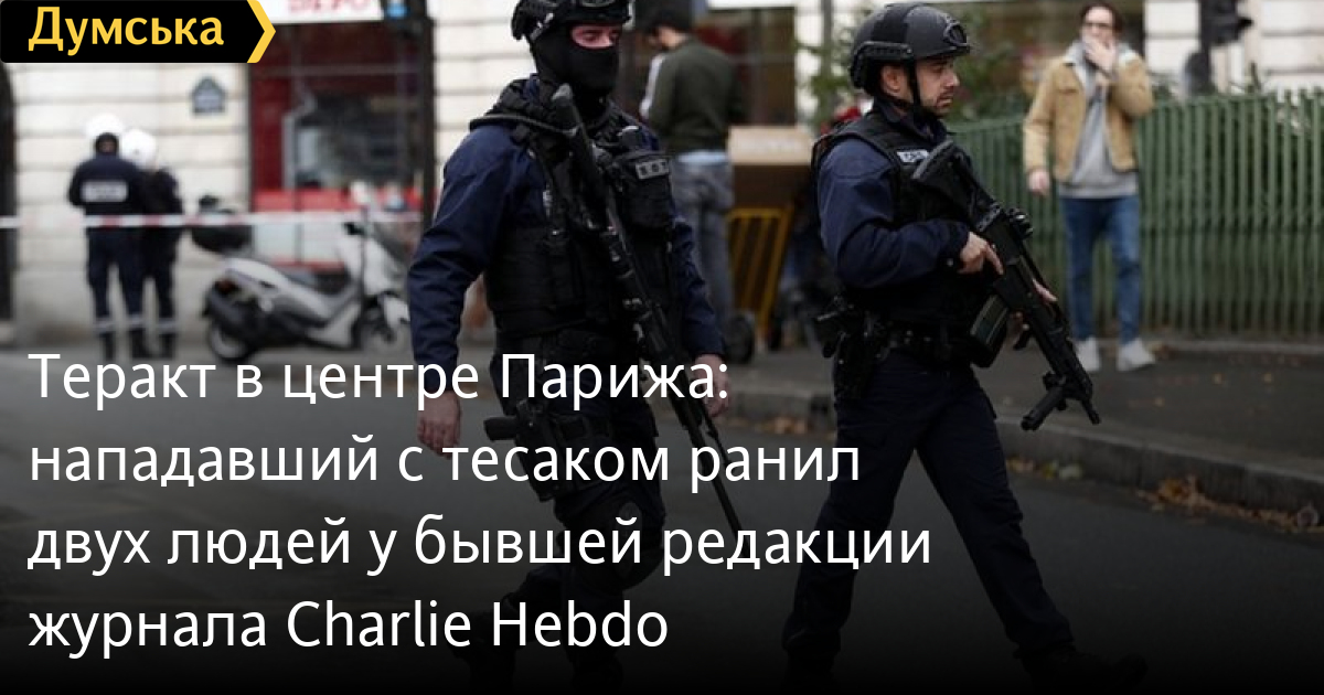 Теракт в центре Парижа: нападавший с тесаком ранил двух людей у бывшей редакции журнала Charlie HebdoУтром в Париже мужчина с тесаком напал на двух прохожих у входа в бывшую редакцию сатирического журнала Charlie Hebdo. Французская полиция сообщает о двух тяжелораненых, ранее премьер-министр Франции Жан Кастекс заявил, что пострадали четыре человека. Полиция задержала нападавшего, который бросил орудие преступления и пытался скрыться на метро. Также сообщается, что недалеко был задержан его сообщник. Место преступления оцепили большое количество полиции и военнослужащих. Расследованием инцидента занимается отдел полиции по борьбе с терроризмом. Напомним, в 2015 году на редакцию Charlie Hebdo совершили нападение представители террористической организации «Исламское государство», убили 12 и ранили 11 человек. Причиной нападения стали карикатуры на пророка Мухаммеда, которые издание опубликовало в 2006 году. В сентябре 2020 года журнал снова опубликовал эти карикатуры. СМЕРТЬ РОССИЙСКИМ ОККУПАНТАМ! Заметили ошибку? Выделяйте слова с ошибкой и нажимайте control-enter |