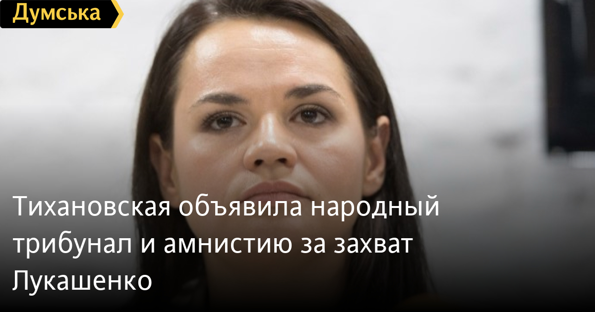 Лидер белорусской оппозиции Светлана Тихановская объявила о создании народного трибунала и пообещала амнистию силовикам, которые захватят действующего президента Александр Лукашенко и «членов его преступной группировки». «Наша страна окончательно превратилась в место преступления. Я заявляю, что Александр Лукашенко и его пособники – террористическая организация, которая должна ответить за свои преступления. В августе мы убедились в том, что избирательная система – это просто фикция для покрывания преступлений режима. И мы сами решили считать наши голоса. Правосудие в нашей стране – такая же фикция, и беларусы готовы действовать, чтобы вернуть закон», — заявила Тихановская в своем Теlegram-канале. «Я, Светлана Тихановская, объявляю народный трибунал и амнистию за захват Лукашенко и членов его террористической группировки. Если государственная судебная система не работает, мы справимся без нее. Ответить должен каждый, кто цинично нарушил и нарушает закон: от членов избирательных комиссий и провластных наблюдателей до чиновников, идеологов и офицеров, отдававших и выполнявших преступные приказы. Вы нарушили закон, и вы боитесь правосудия. Но время правосудия пришло», — говорится в сообщении Тихановской. Она также опубликовала «план» народного трибунала, состоящий из шести пунктов. Первым пунктом значится нейтрализация «идеологов и пособников режима», которые устраивают репрессии на местах, угрожая увольнениями, отчислениями и тюрьмой. Вторым — сбор и проверка доказательств преступлений режима Лукашенко. Третий пункт предполагает амнистию либо смягчение уголовной ответственности для силовиков, исполнявших преступные приказы режима. Для этого нужно предоставить видео и другие свидетельства таких преступлений. В четвертом пункте говорится о проведении «народного обвинения» по материалам, собранным через систему фиксации и подтверждения свидетельств преступлений. «Каждый беларус сможет проголосовать за обвинение подозреваемых. Мы не выносим приговор до честного суда, но все люди, за обвинение которых проголосует народ Беларуси, первыми будут привлечены к ответственности», — говорится в сообщении. Согласно пятому пункту, после вынесения результатов «народного обвинения», 20 декабря планируется проведение 20 декабря массового марша, который «покажет всему миру, что справедливого суда над преступниками требует большинство». Шестой пункт называет единственным механизмом принятия решения в стране — «голос большинства», который будет действовать до «восстановления закона«. »Если большинство голосует за то, что эти люди должны быть преданы суду, то по статье 109 УПК РБ каждый гражданин имеет право захватить и принудительно доставить в орган власти лицо, застигнутое при совершении преступления или попытке скрыться после его совершения. Это касается не только Александра Лукашенко, но и всех, чьи преступления будут засвидетельствованы народом. Помощь в захвате главных преступников будет вознаграждена амнистией либо серьезным смягчением ответственности за совершенные ранее преступления», — отметила Тихановская. По ее словам, «план народного трибунала» имеет две цели: «остановить беззаконие и показать, что бояться должны не протестующие беларусы, а те, кто совершает преступления против них». СМЕРТЬ РОССИЙ