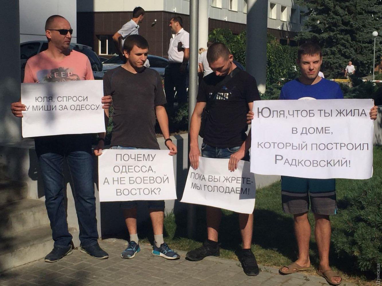 Выполнив свою физкультурную программу, Тимошенко отправилась общаться с какими-то портовиками в гостиничный комплекс на Генуэзской. Правда, встречу Юлии Владимировны с трудовым народом несколько омрачила акция протеста людей, которых обманул глава одесской «Батькивщины», предприниматель и зампред облсовета Олег Радковский. Они пожелали оппозиционеру пожить в одном из домов, которые так и не построил ее соратник.