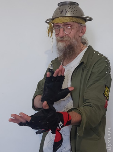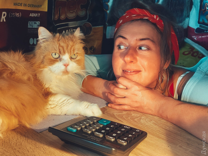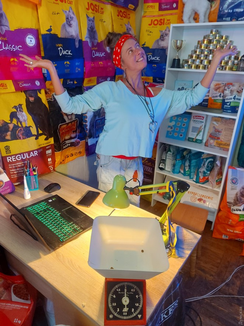 Артур Садовнiков. Почали ми з пошуку локації, де будемо знімати. Знайшовся зоомагазин, який погодився безкоштовно нас пустити. Ми сходили на розвідку, побачили потік покупців і зрозуміли, що це нереально: ми їм наламаємо всю торгівлю. І вирішили зробити знімальний павільйон удома. Одну з кімнат переробили на зоомагазин. І понеслося «У нього немає кота», актриса Ольга Марнич «Думська». Ви з Артуром співавтори і співрежисери? Були творчі розбіжності? Як це - на майданчику два режисери? Що найскладніше було в цих зйомках? Олена Кутінова. Спочатку я написала няшний сценарій про котика, який говорить. Загалом моя ідея була спрямована на позитивні моменти людського існування, на вміння людей, попри навколишній апокаліпсис, примудрятися жити своїм маленьким приватним життям і радіти простим речам. Але потім долучився Артур і масштабував історію до глобальних соціально-філософських контекстів. І неймовірно розширив коло учасників — до міжнародного рівня. Творчі розбіжності, звісно, неминучі в такій ситуації. Звичайно, вони були і відбуваються на кожному кроці. Напевно, всі ці компроміси породили третє бачення — і фільм почав жити своїм життям, за власними внутрішніми законами. Зараз я зовсім не знаю, що це вийде. Задумувала як мейнстрим — наскільки він можливий в умовах тотального артхаусу і майже нульового бюджету. А тепер цей фільм з елементами сюжету, відеоарту, абсурду перетворюється на гротескну сатиру Дуже далеко пішло все від початкової ідеї, яка тепер розробляє сама себе. Незвичайний проєкт. Для мене самої — це тепер інтрига. «У нього немає кота», актор Олександр Олександрович «Д». У фільмі буде згадка про війну? О.К. Так, звісно. Дія відбувається тут і зараз, в Україні (місто ми не уточнюємо) в зоомагазині під час війни. Постійно чути тривоги. Герої ловлять терориста, який наводив ракети на будинки та школи. І загалом ми показуємо, як війна деформує психіку. Як люди виживають і вигрібають — або не вигрібають. Божеволіють або тримаються. Це фільм про ПТСР взагалі. Спочатку я задумувала, що котик, який говорить, вилікує головну героїню від психотравми, завданої війною. Але зараз концепція розширилася до такої неприємної ідеї, що все людство — як би це не було сумно — невиправно хворе психічно. І тільки тварини в цьому фільмі зберігають адекватність.