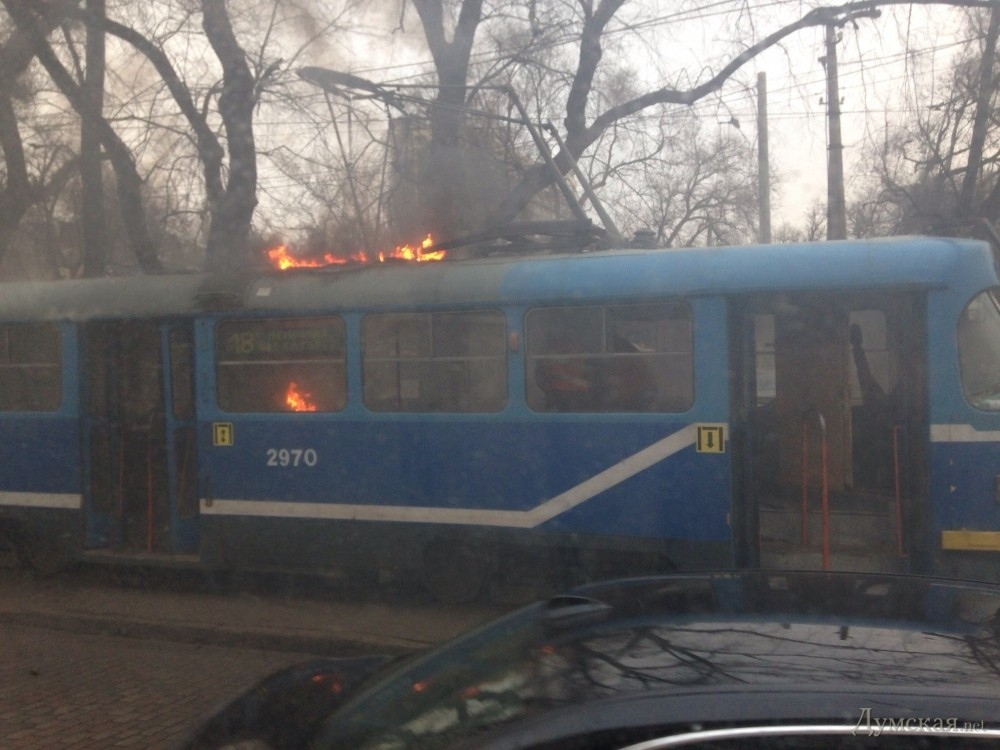 Причиной возгорания трамвайного вагона на Куликовом поле 15 января стала его неправильная буксировка. Неисправный вагон буксировали в депо для ремонта и по дороге он загорелся. «Причина возгорания вагона №2970, который загорелся днем 15 января на оборотном кольце конечной остановки на Куликовом поле – касание неисправного пантографа к крыше вагона и контактной сети. Это произошло из-за нарушения правил буксирования неисправного вагона», — сообщил «Думской» в коммунальном предприятии «Одесгорэлектротранс».