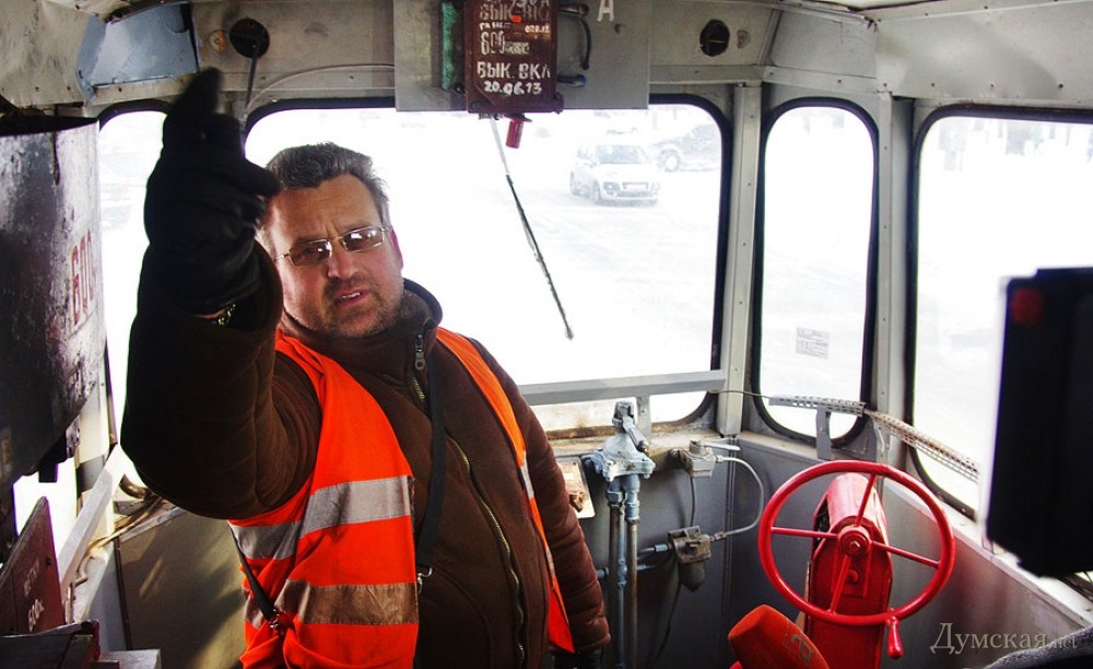 Мы уже писали о том, как сотрудники ГСЧС при помощи передовой техники помогают нерадивым автолюбителям выбраться из лап непогоды, пленившей их на юге области. Так вот, одесские коммунальщики тоже держат руку на пульсе стихии. И если о специфической подготовке рядовых дворников мы писали еще осенью, то о тяжелой технике, подконтрольной КП «Горэлектротранс», Одесса узнала только сейчас. Оказывается, одесские трамвайщики обладают целой ротой из девяти (один, правда, на ремонте) супер-эффективных снегочистителей. Именно благодаря этим чудо-машинам горожане имеют возможность относительно свободно пользоваться трамваями в непогоду. С виду они напоминают знаменитый ретро-трамвай — советский МТВ-82, переделанный под «пульман» начала века, — только уже и изящнее. Платформы красного цвета, с двух сторон оборудованные железными щетками и бульдозерными ковшами. Изнутри агрегат обладает эстетикой крепких шестидесятых. Естественно, советской эстетикой, объединяющей практичность с аскетизмом и напрочь отбрасывающей бытовые удобства. Все агрегаты находятся в прямом доступе водителя на расстоянии вытянутой руки, но ни кондиционеров/обогревателей, ни мягких кресел (и кресел вообще), ни кофейного аппарата конструкторы не предусмотрели. В общем, внутри все похоже, скорее, на заводскую каптерку, чем на салон трамвая. Управляют грозной машиной два водителя первого класса. Оба относятся к работе на очистителях как к почетной обязанности и регулярно заставляют молодых обучаться и этому ремеслу. Первый водитель, вроде как постарше, не особо интересуется журналистами. Он за рулем (условно выражаясь), ему не до того, да и не в восторге Виталий Викторович Горлыкин от всей это нездоровой шумихи вокруг рутинной работы. Второй – Руслан Владимирович Курбатов – помоложе: в трамвайном деле «всего» восемнадцать лет. Он отвечает за работу щеток, перевод стрелок в случае отказа автоматики и за все остальное, что не связано с собственно движением вагона. Пока первый, как капитан на мостике, с важным видом рассекает по снежным волнам (которые сам и поднимает), второй травит байки перед собравшимися журналистами. Например, по его словам, самый важный инструмент на борту – это ломик. Он должен быть всегда заточенным, поскольку им и лед колоть, и стрелки переводить, и случись что, можно болт разболтавшийся закрутить. Кстати, острота заточки лома отличает опытного водителя от «зеленого». Арсенал борца со снегом дополняют веник и резиновые перчатки. Первый банально нужен, чтобы подметать железные ступеньки трамвая. Они постоянно в снегу, а высота их – метр. Ну а у перчаток срок годности полгода — чтобы общаться с 600-вольтным оборудованием, они просто обязаны быть новенькими, сухими и необлупленными. Прочее оборудование не особо прихотливо, а потому исправно служит с 1968-го года. Предохранители «летят» редко, маршруты меняются редко, аварии по вине техники случаются тоже редко. Главное, чтобы очередной сугроб на пути не оказался покрытым снегом автомобилем. Их, увы беспечные водители бросают на путях до неприличия часто Автор — Алексей Кравцов СМЕРТЬ РОССИЙСКИМ ОККУПАНТАМ! Заметили ошибку? Выделяйте слова с ошибкой и нажимайте control-enter |