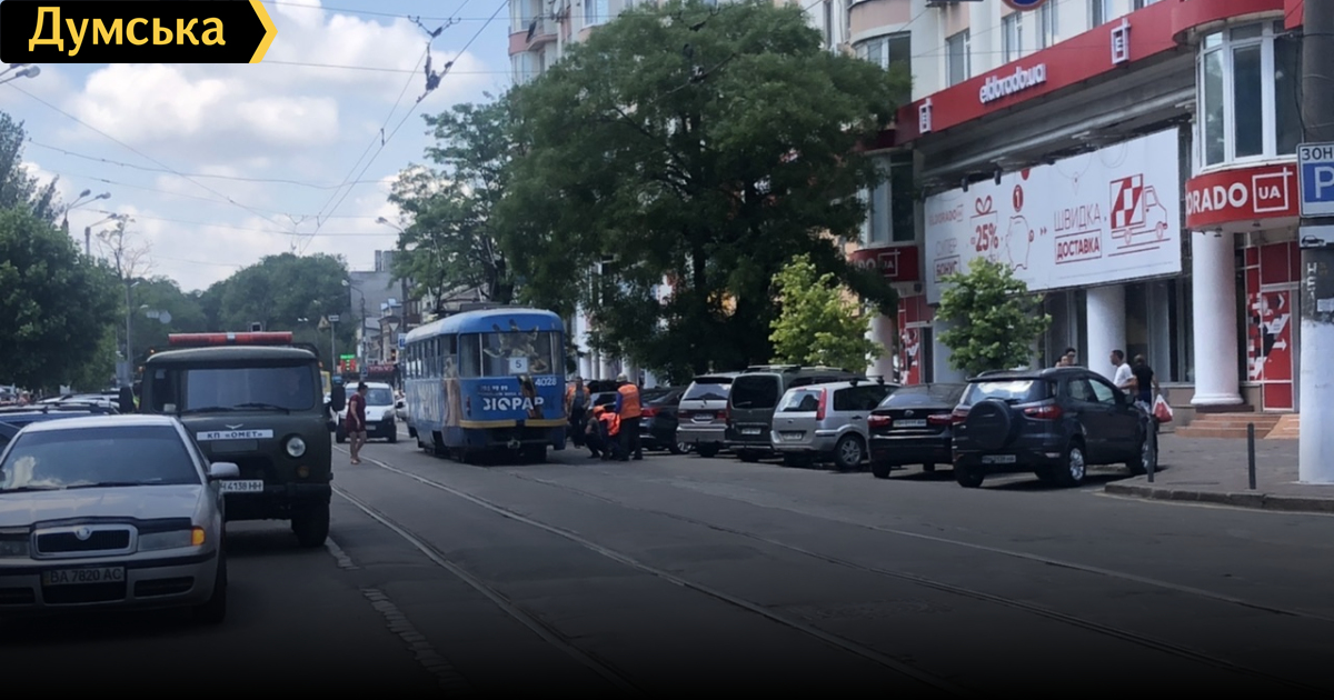 В понедельник днем на улице Пантелеймоновской в Одессе трамвай сошел с рельсов.