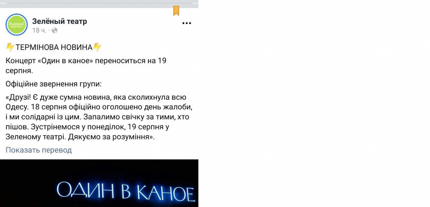 Траур в Одессе: Зеленый театр и Филармония отменили концерты, а Ibiza, Горпляж и Кирха — нетПо-разному отреагировали увеселительные заведения Одессы на траур, объявленный 18 августа по погибшим на пожаре в отеле «Токио Стар». Так, к примеру, ночной клуб «Ибица» не стал отменять свои мероприятия. Как и планировалось, там сегодня споет заморский исполнитель Tyga. Об этом «Думскую» заверили в кассе клуба. Не поменяла планы в траурный день и администрация «Горпляжа» (Отрада), где этим вечером состоится камерный концерт «Джаз на пляже». Самое неожиданное: не отменили концерт в Соборе Святого Павла. О том, что все в силе и органный концерт в Кирхе «На романтической волне» состоится, несмотря ни на что, нам сообщили в театральных кассах. А вот выступление коллектива «Один в каное», которое должно было пройти сегодня на сцене Зеленого театра, перенесли на завтра. На страничке театра в «Фейсбуке» уже с утра появилось заявление от самих музыкантов о том, что концерт пришлось отменить в связи с трагическими событиями. Отменили и концерт в одесской Филармонии, где должен был выступить симфонический оркестр с программой «ШампанськI очI» к 30-летию группы «Скрябин». Напомним, сегодня в Одессе также не стали отменять фестиваль шансона. Но организаторы пообещали почтить память погибших минутой молчания и перечислить часть собранных средств пострадавшим от пожара. СМЕРТЬ РОСІЙСЬКИМ ОКУПАНТАМ! Помітили помилку? Виділяйте слова з помилкою та натискайте control-enter |