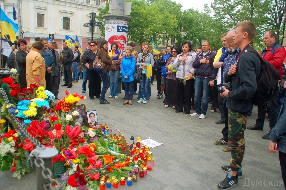 После окончания митинга действо переместилось на перекресток Дерибасовской и Преображенской, где зажгли поминальные свечи и возложили множество цветов к импровизированному мемориалу в память погибших год назад активистов Игоря Иванова и Андрея Бирюкова.