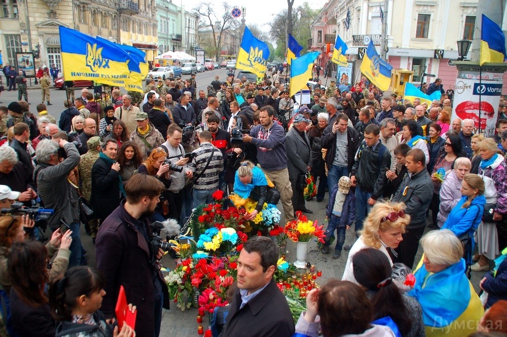 На митинге выступили народные депутаты, руководители и активисты проукраинских партий и организаций. Они напомнили, что ровно год назад одесситы защитили не только родной город, но и всю Украину, и двое и них отдали за это свои жизни.