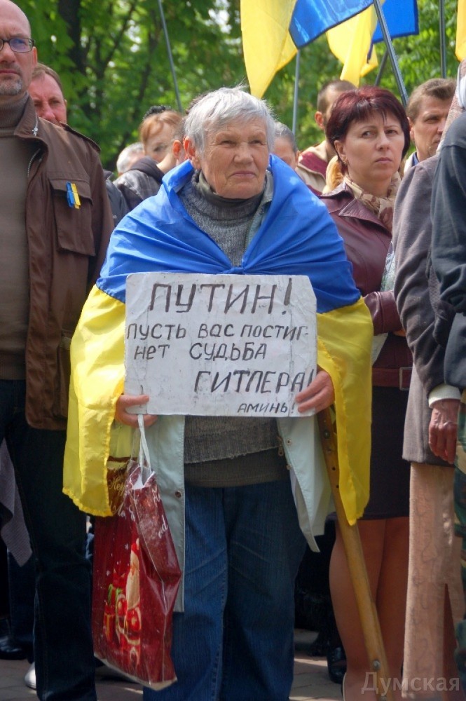 А тем ублюдкам, которые кричат, что Украина умерла 2 мая, я хочу сказать следующее: Украина для вас никогда не существовала! Вы лишь ждали удобный момент, чтоб сбросить маски. Любовь к Родине не определяется тем, кто находится у власти. Ваши визги о нацистах просто смешны. Когда страной правил косноязычный уголовник, никто из нас не сказал, что Украины больше нет, никто не просился в Польшу или еще куда-то. Мы просто вышли на улицы, когда уголовник перешел черту. Подумайте своим мозгом, если у вас в голове еще что-то, конечно, осталось.
