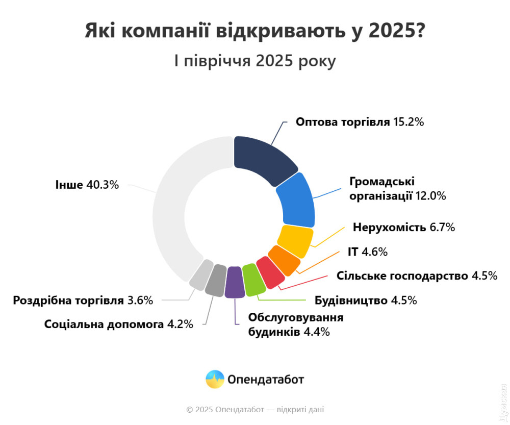 В лидерах по числу новых и исчезнувших компаний: Одесчина попала в топ-5 рейтинга и антирейтингаОдесчина стала одним из лидеров двух рейтингов: по числу бизнесов открытых и закрытых за первое полугодие 2025-го. Регион четвертый в обоих случаях (1 198 новых и 412 исчезнувших компаний), о чем свидетельствуют данных Единого государственного реестра, которые приводит «Опендатабот». Всего в Украине зарегистрировали более 18 тысяч новых компаний. Почти столько же, сколько в 2024-м, и на треть меньше, чем до начала большой войны. Больше всего новых бизнесов в Украине занимается оптовой торговлей — 15% регистраций. На втором месте — общественные организации, за ними следуют недвижимость, IT и агросектор. В то же время общественные организации чаще всего закрывались в этом году — 11% от общего количества закрытий. В этом году один человек умудрился зарегистрировать аж 886 компаний. Ильницкий Виталий Павлович — абсолютный рекордсмен в этом плане. Все его бизнесы в топе по размеру капитала: от 1 млрд грн до 9,8 млрд грн. Всего Ильницкому принадлежит более 3 тысяч компаний. Суммы указаны как уставный капитал могут включать не только реальные средства, но и, например, интеллектуальную собственность или оборудование, стоимость которых сложно проверить. Законодательством Украины не установлены ограничения по максимальному размеру уставного капитала. Около трети всех новых бизнесов открылась в столице — 5 830 компаний. Далее Львовская — 1 547 и Днепропетровская область — 1 531 компания. Не все так стабильно с закрытиями: за год их стало на 19% больше. С начала года успели закрыться 6 653 бизнеса. Лидирует Киев — 717 компаний. Далее Львовская область — 470 предприятий и Днепропетровская область — 464 компании. Все так же, как и с новыми бизнесами. СМЕРТЬ РОССИЙСКИМ ОККУПАНТАМ! Заметили ошибку? Выделяйте слова с ошибкой и нажимайте control-enter |